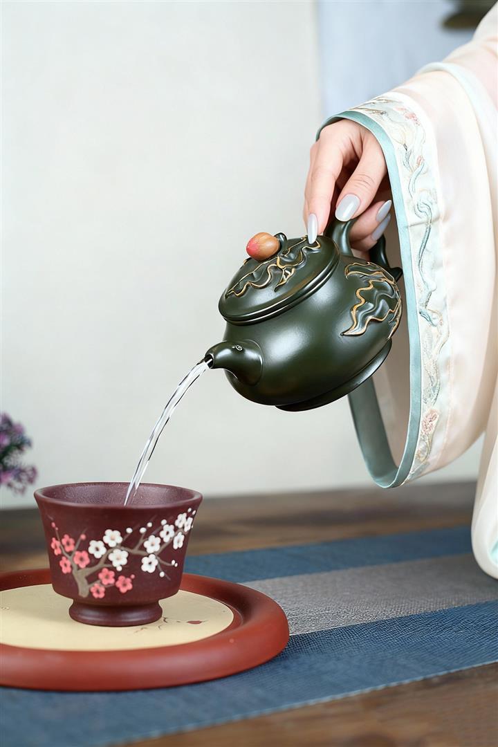 【泥料特點】砂土氣重,似淳實農民,日久使用,漸露鋒芒,養成變化,溫潤莊重。紫砂是壹種雙重氣孔結構的多孔性材質,氣孔微細,密度高。用紫砂壺沏茶,不失原味,且香不渙散,得茶之真香真味。紫砂使用越久,壺身色澤越發光亮照人,氣韻溫雅。紫砂壺長久使用器身會因撫摸擦拭,變得越發溫潤光澤。