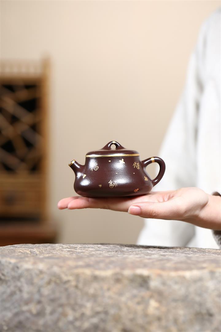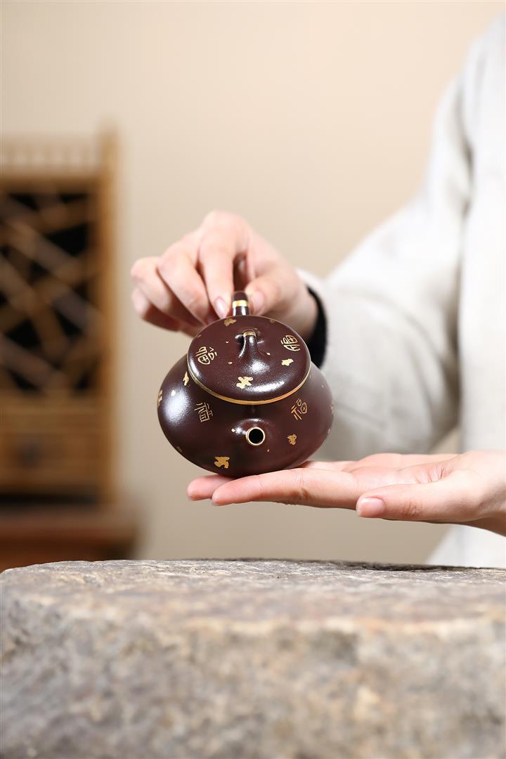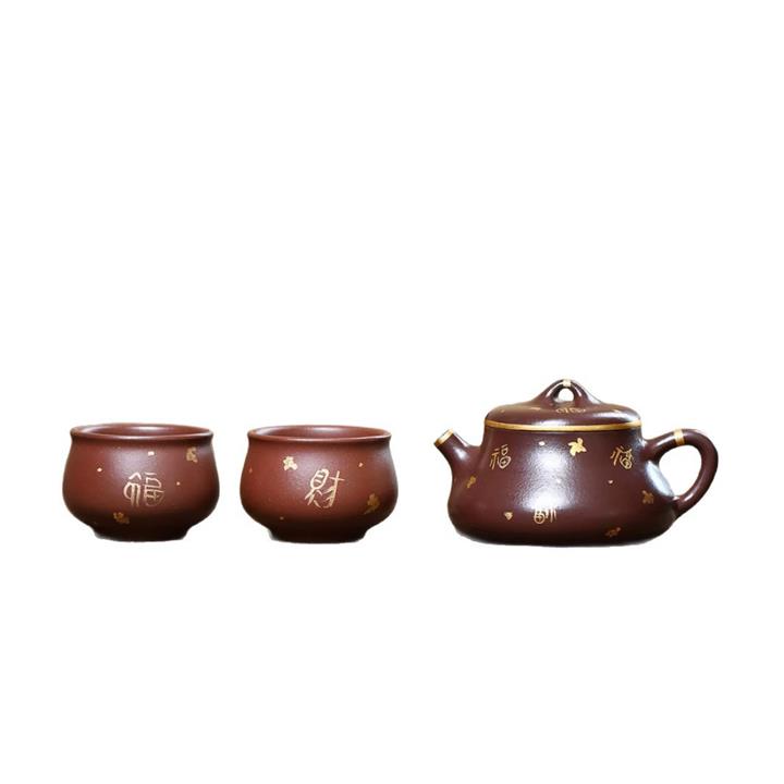 260cc原礦紫泥壹壺兩杯描金漢鐸套組泡茶壺POT9845