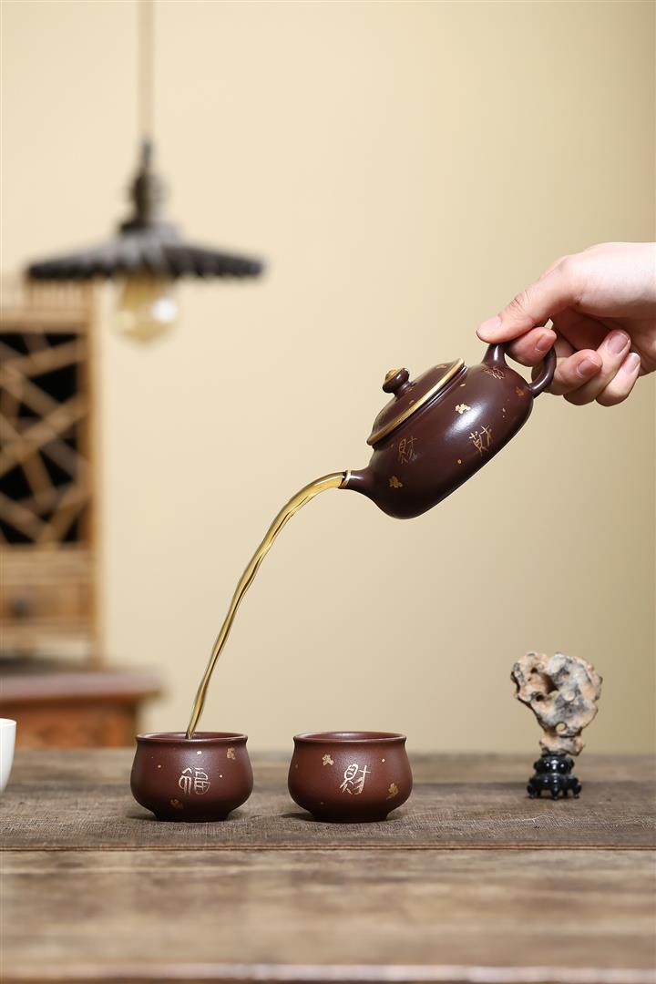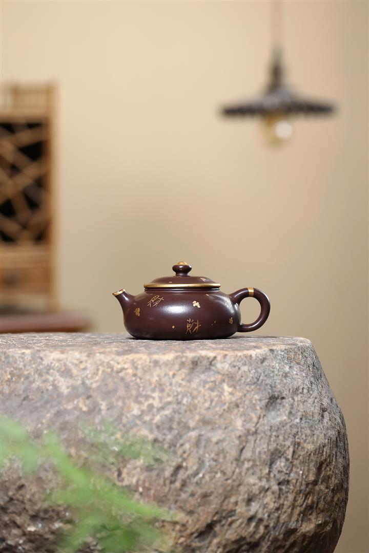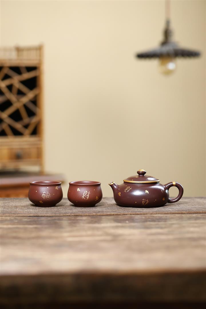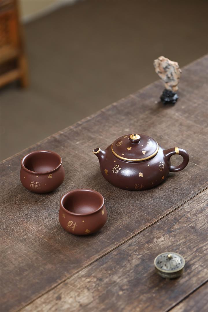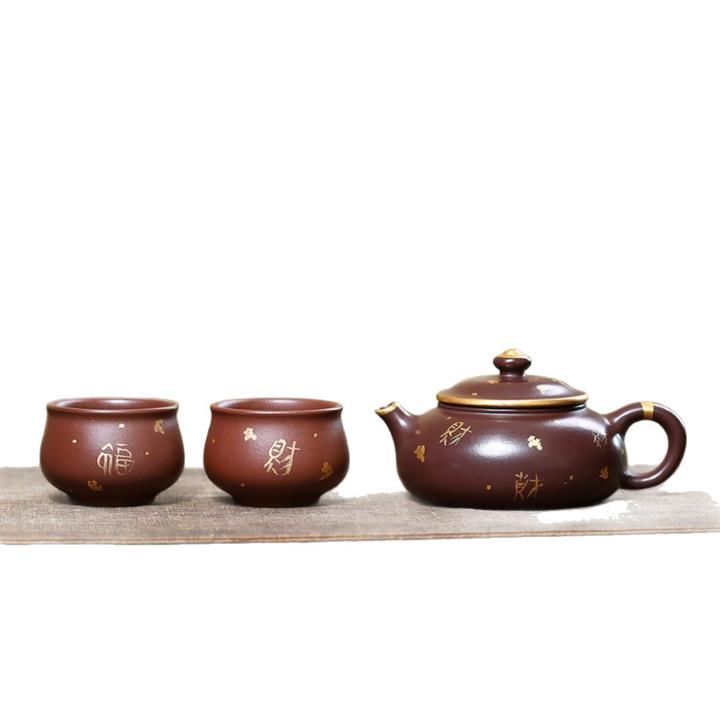 180cc原礦紫泥描金寒江壹壺兩杯泡茶壺POT9846