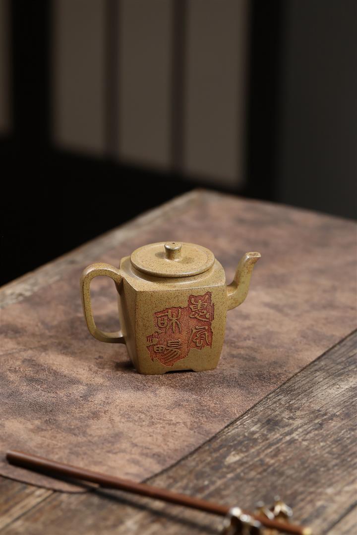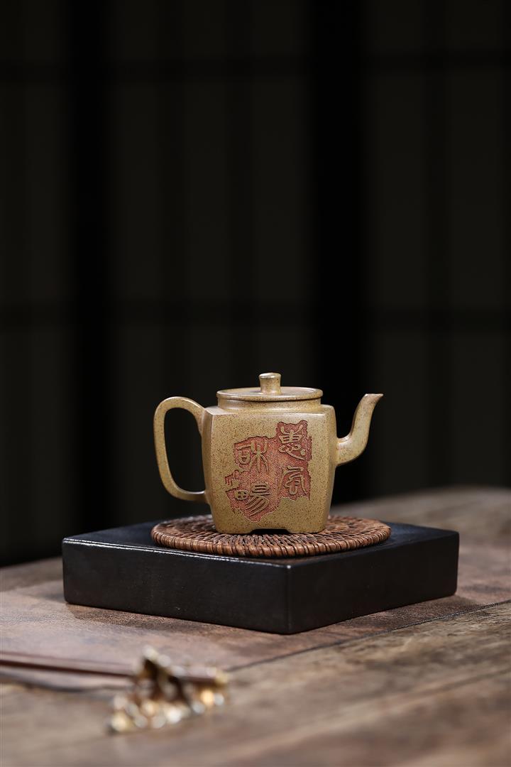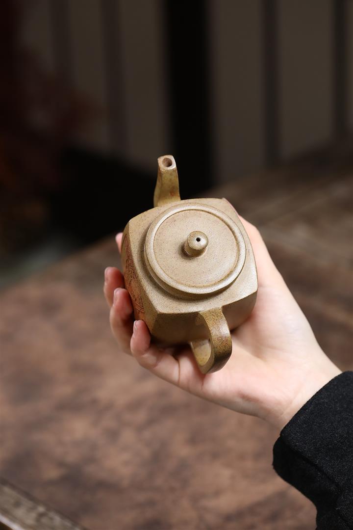 【泥料特點】砂土氣重,似淳實農民,日久使用,漸露鋒芒,養成變化,溫潤莊重。紫砂是壹種雙重氣孔結構的多孔性材質,氣孔微細,密度高。用紫砂壺沏茶,不失原味,且香不渙散,得茶之真香真味。紫砂使用越久,壺身色澤越發光亮照人,氣韻溫雅。紫砂壺長久使用器身會因撫摸擦拭,變得越發溫潤光澤。