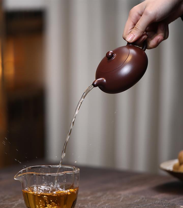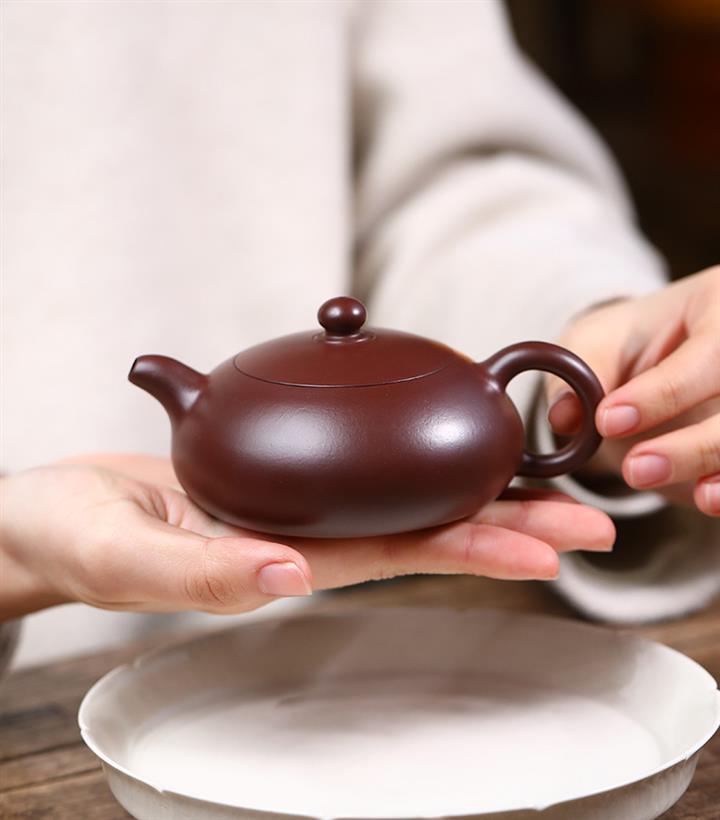【泥料特點】砂土氣重,似淳實農民,日久使用,漸露鋒芒,養成變化,溫潤莊重。紫砂是壹種雙重氣孔結構的多孔性材質,氣孔微細,密度高。用紫砂壺沏茶,不失原味,且香不渙散,得茶之真香真味。紫砂使用越久,壺身色澤越發光亮照人,氣韻溫雅。紫砂壺長久使用器身會因撫摸擦拭,變得越發溫潤光澤。