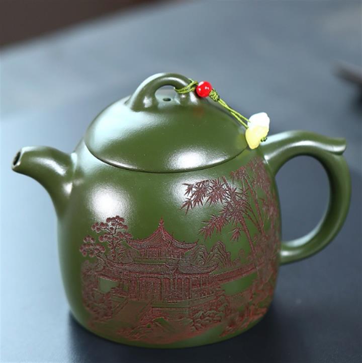 380cc原礦綠泥竹林松濤秦權泡茶壺POT9866