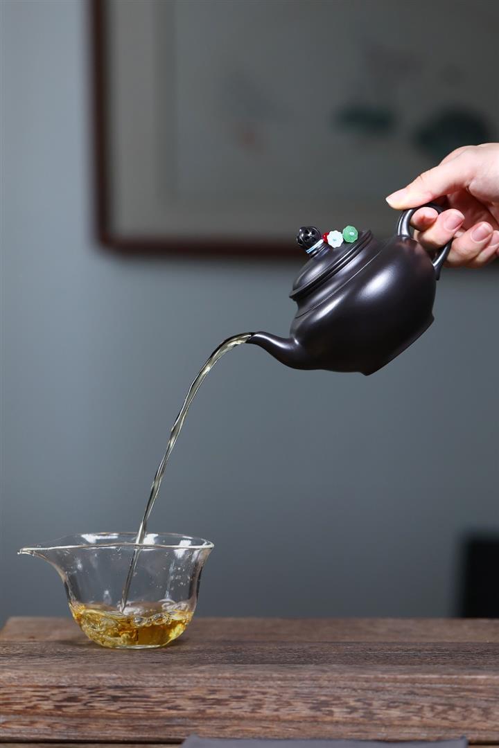 【泥料特點】砂土氣重,似淳實農民,日久使用,漸露鋒芒,養成變化,溫潤莊重。紫砂是壹種雙重氣孔結構的多孔性材質,氣孔微細,密度高。用紫砂壺沏茶,不失原味,且香不渙散,得茶之真香真味。紫砂使用越久,壺身色澤越發光亮照人,氣韻溫雅。紫砂壺長久使用器身會因撫摸擦拭,變得越發溫潤光澤。