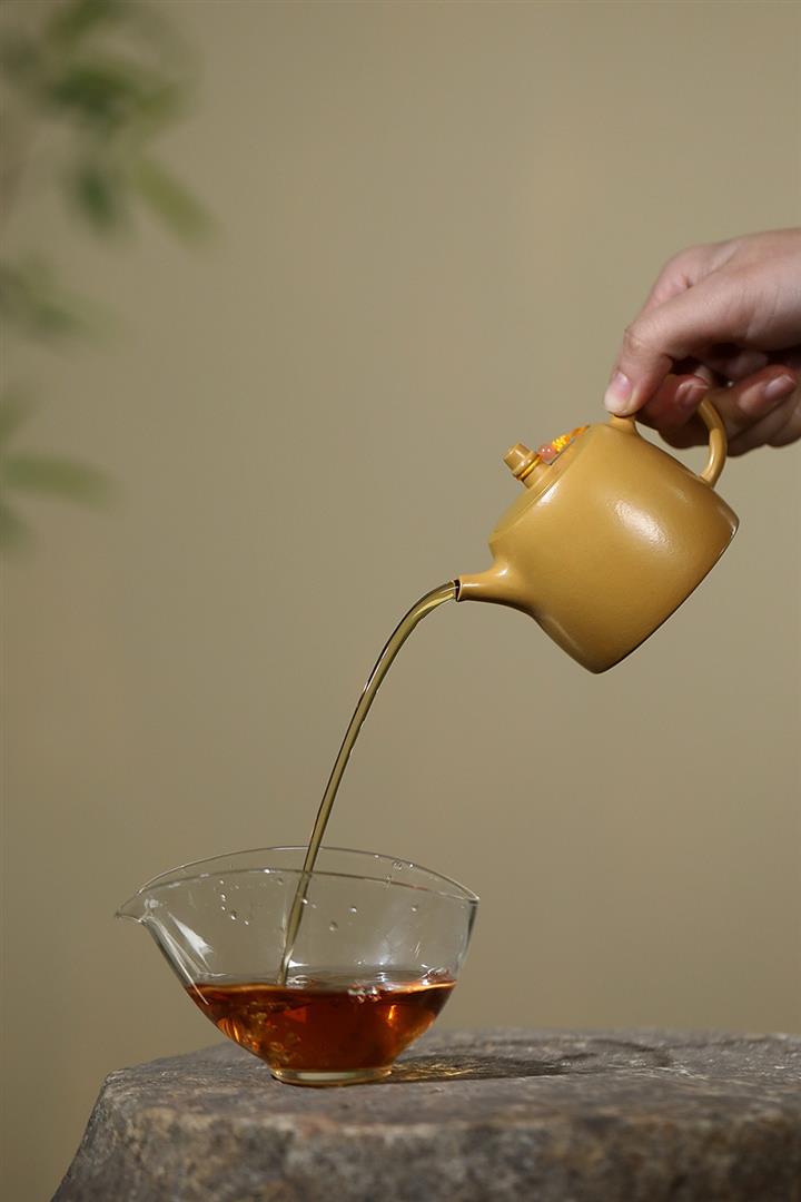 【泥料特點】砂土氣重,似淳實農民,日久使用,漸露鋒芒,養成變化,溫潤莊重。紫砂是壹種雙重氣孔結構的多孔性材質,氣孔微細,密度高。用紫砂壺沏茶,不失原味,且香不渙散,得茶之真香真味。紫砂使用越久,壺身色澤越發光亮照人,氣韻溫雅。紫砂壺長久使用器身會因撫摸擦拭,變得越發溫潤光澤。