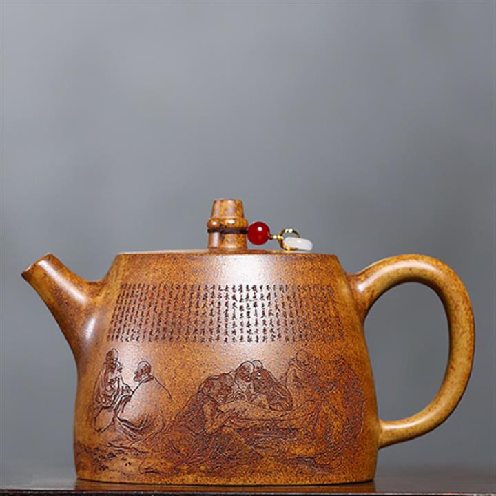 520cc原礦石紅竹林七賢曲壺泡茶壺POT9876
