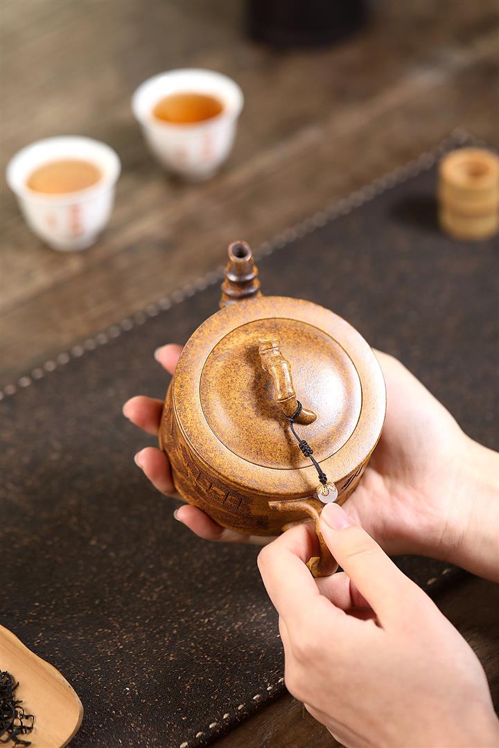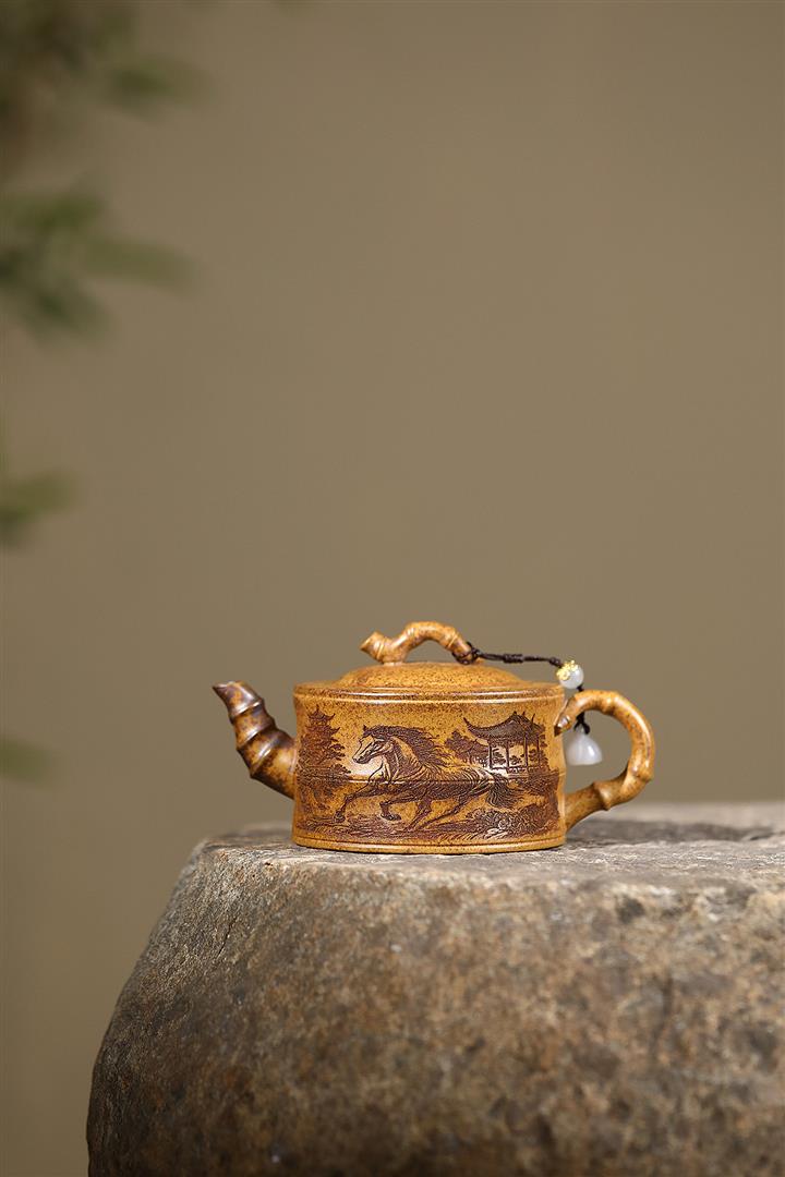 200cc原礦龍骨金砂竹段泡茶壺POT9868