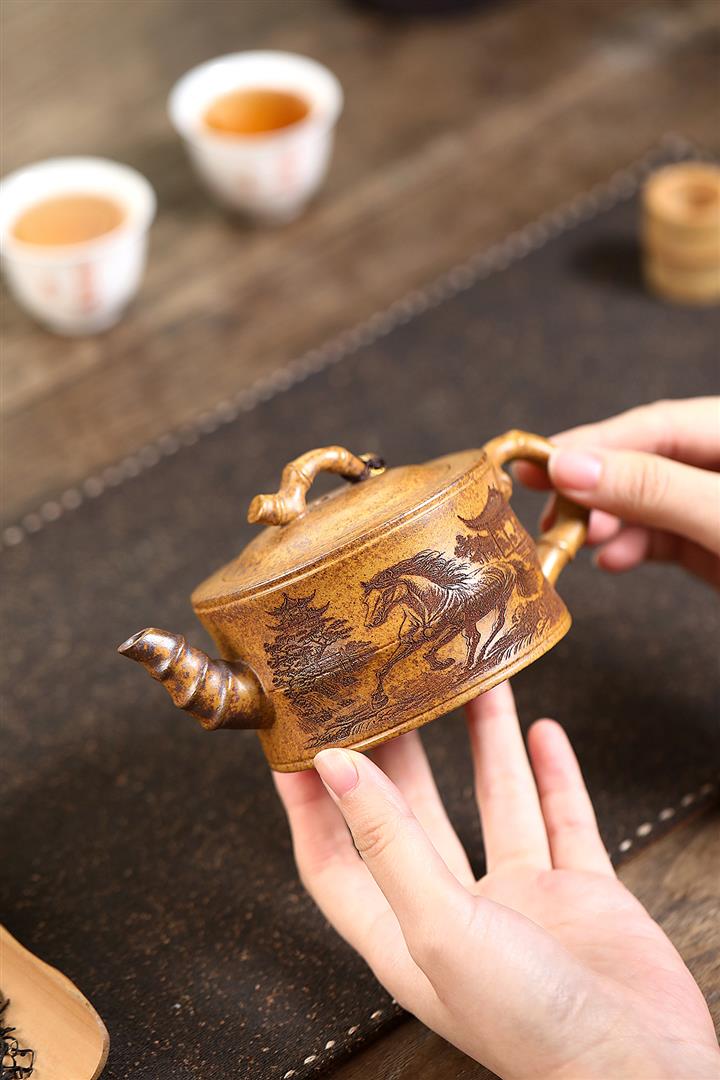 【作品介紹】此款壺形線條流暢,壺把,壺嘴,壺身壹氣呵成栩栩如生,是收藏把玩的好壺,泥料色澤古樸典雅,日久使用,漸露鋒芒,養成變化快,溫潤莊重,用其泡茶,使用的年代久,壺身就溫潤,泡出來的茶湯也就醇郁芳馨。