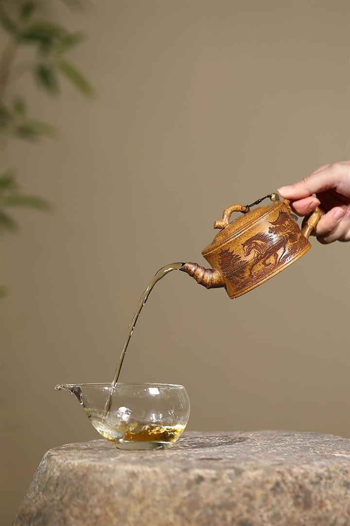520cc原礦石紅竹林七賢曲壺泡茶壺POT9876