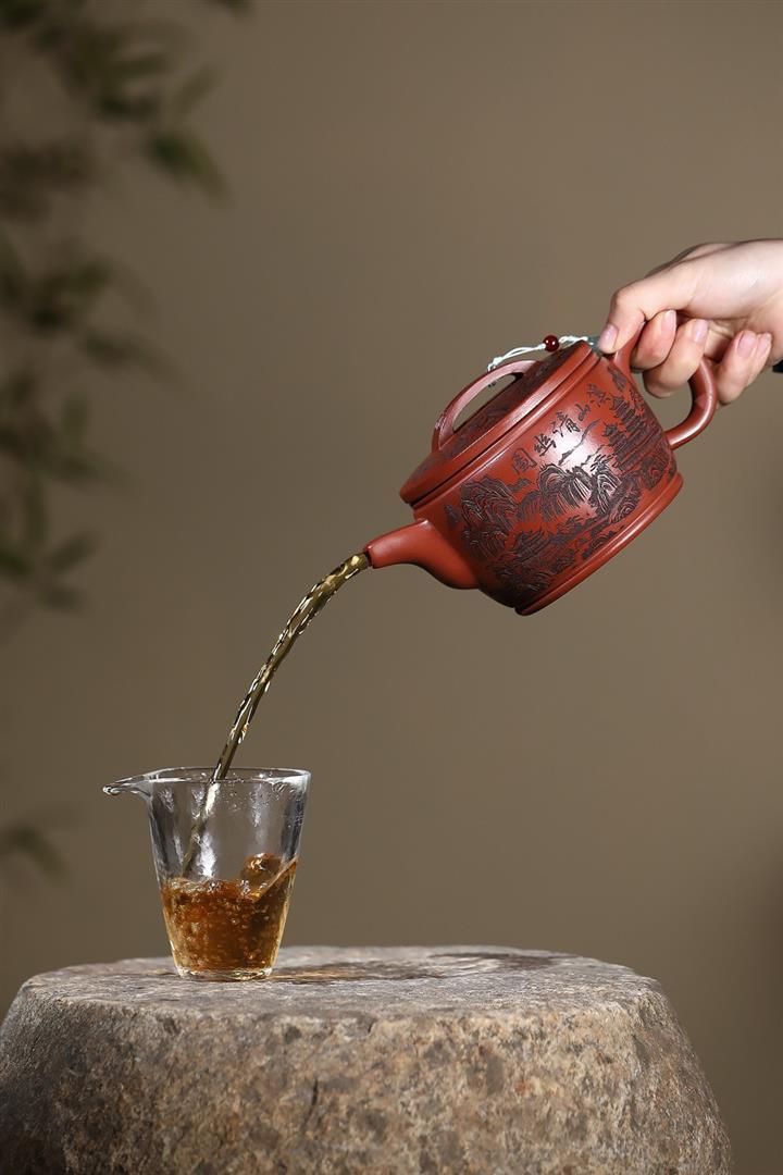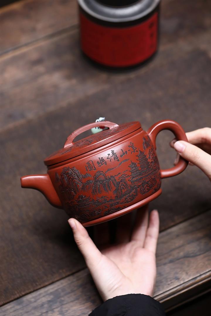 650cc原礦紅皮龍山水漢瓦泡茶壺POT9869