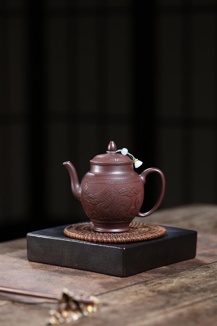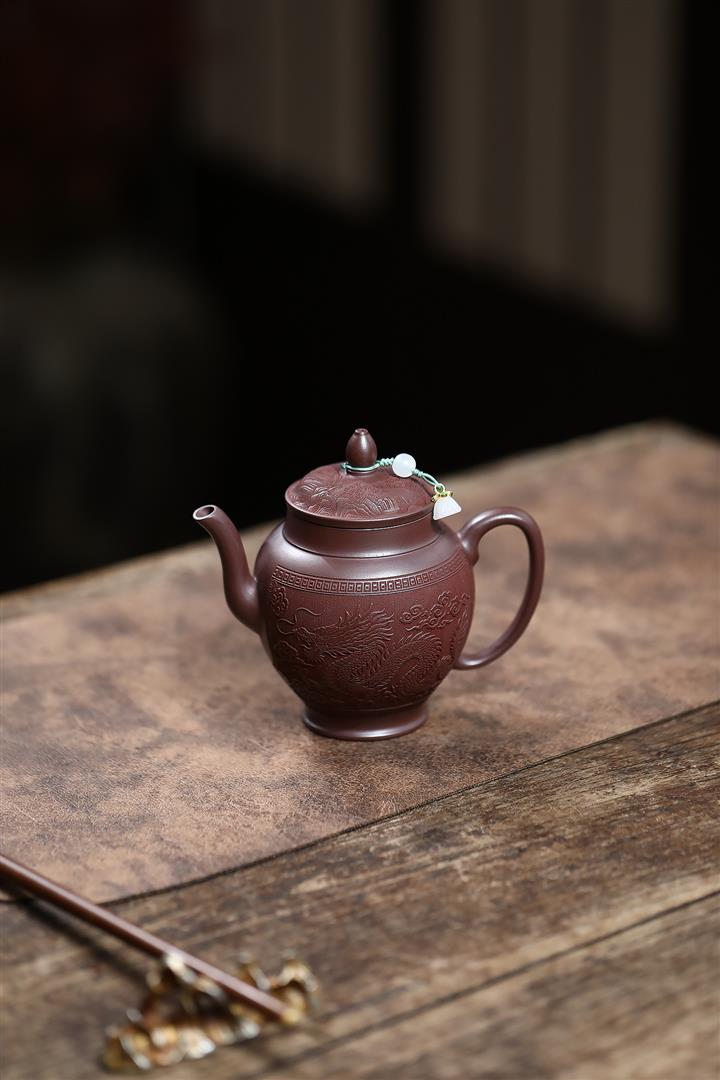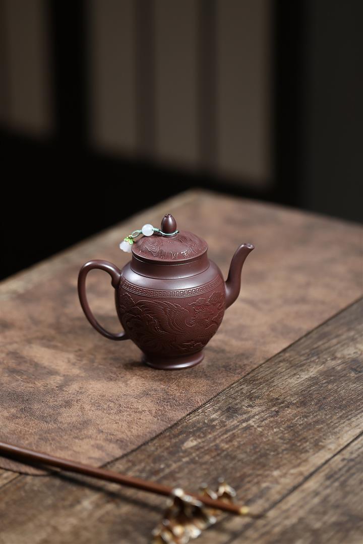 210cc原礦紫泥高宮燈龍鳳呈祥泡茶壺POT9873