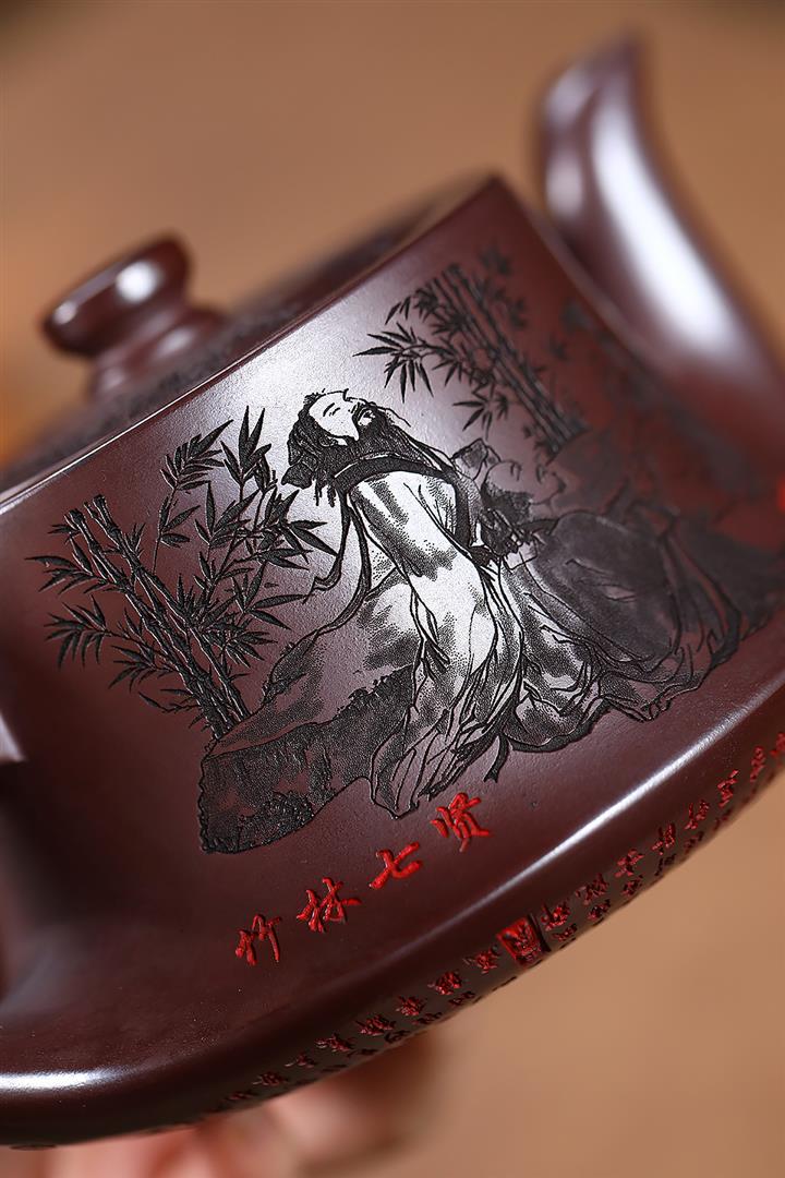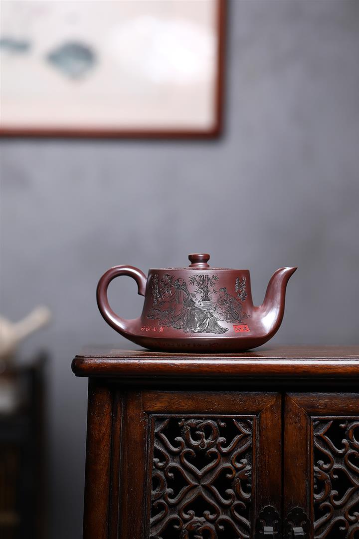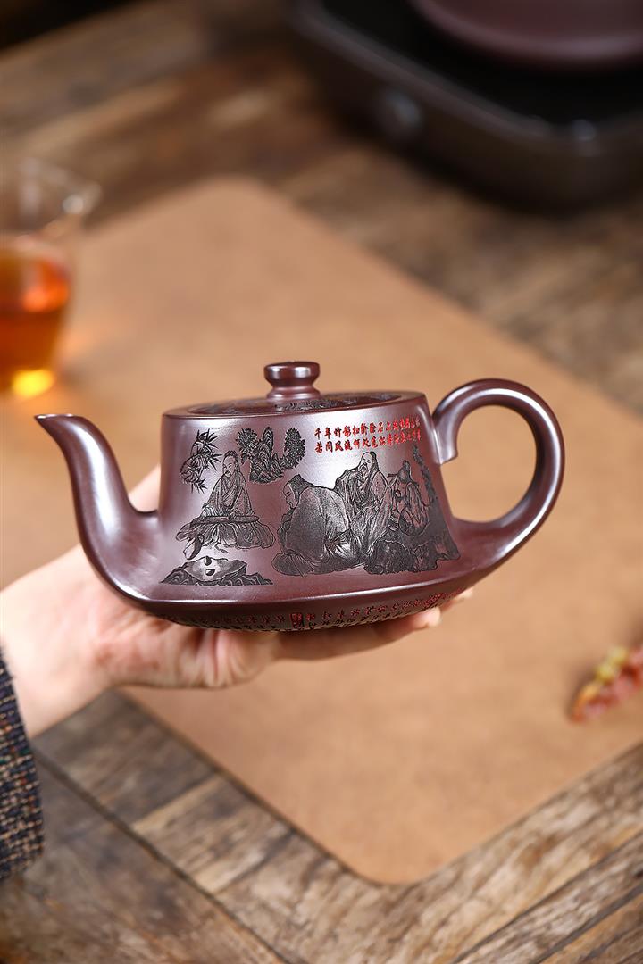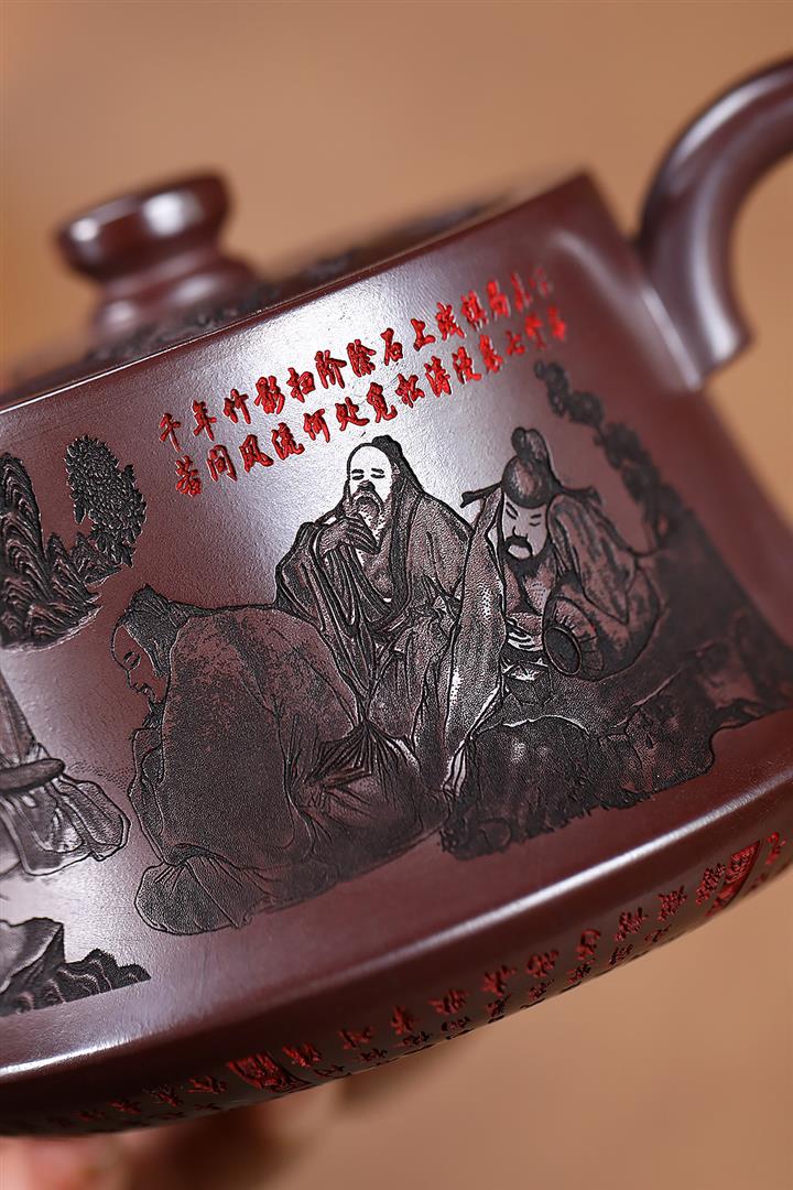 520cc原礦石紅竹林七賢曲壺泡茶壺POT9876