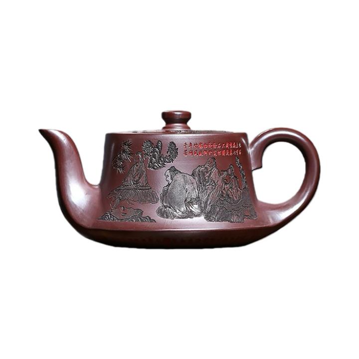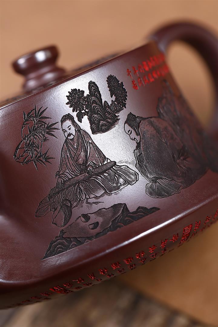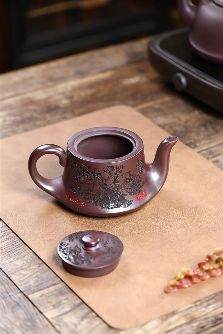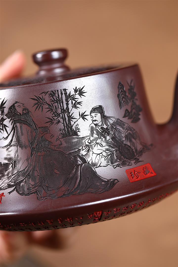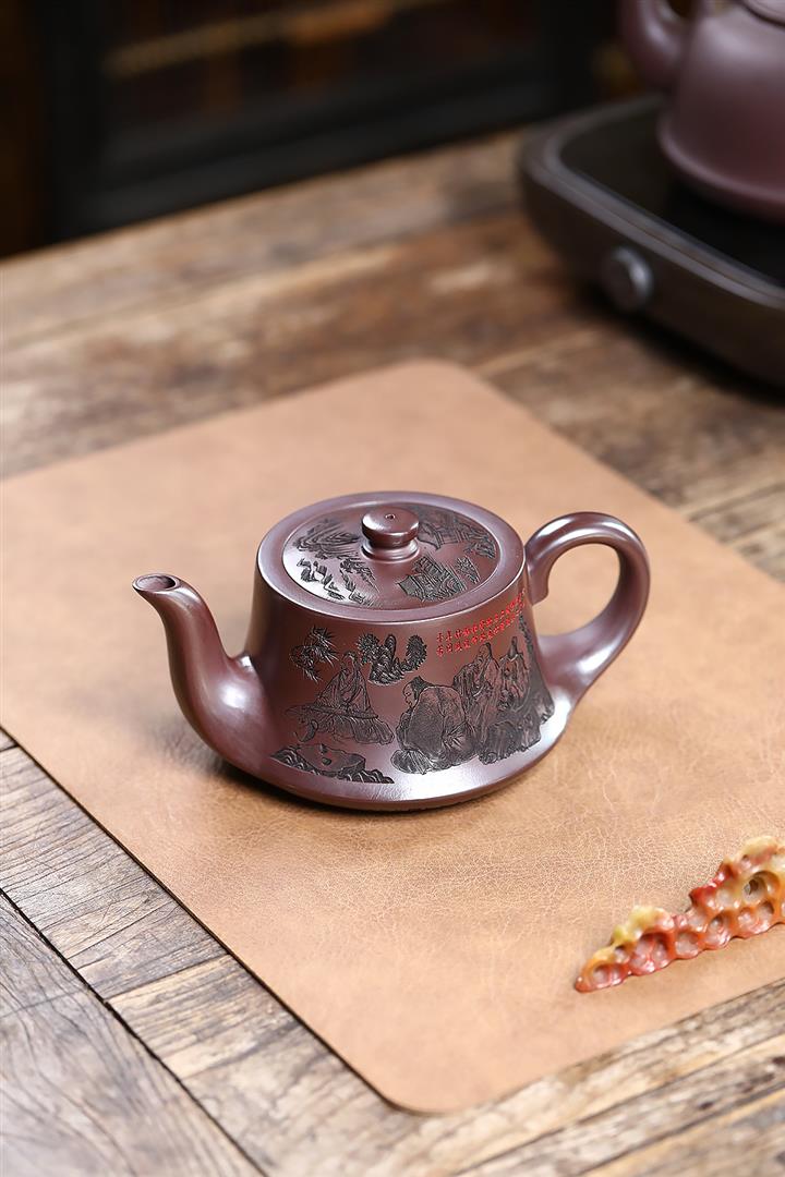 520cc原礦石紅竹林七賢曲壺泡茶壺POT9876