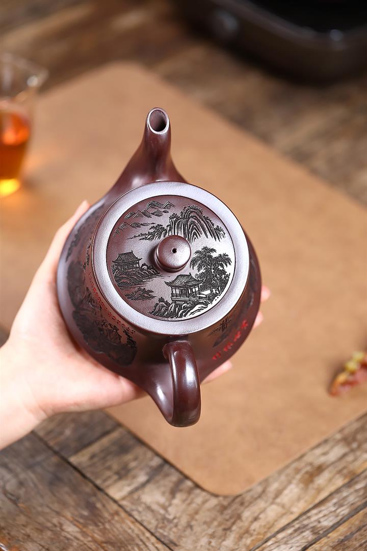 260cc原礦大紅袍刻繪石瓢泡茶壺POT9885