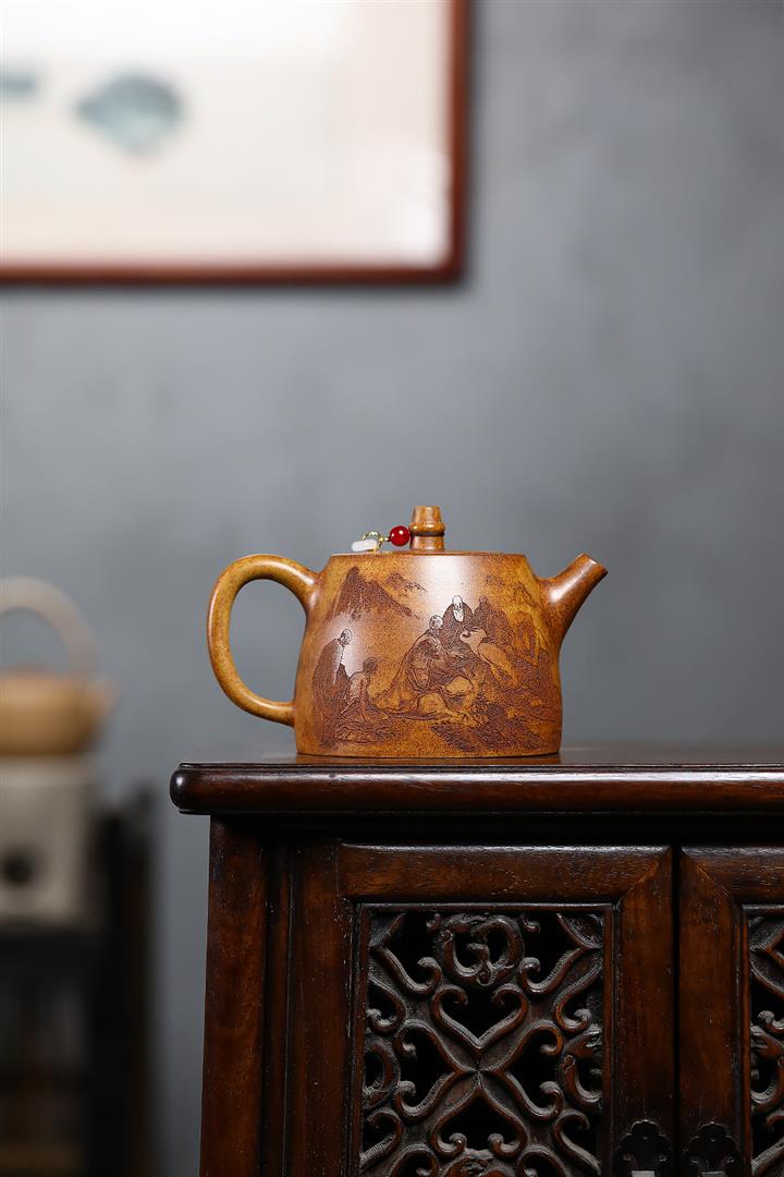 260cc原礦大紅袍刻繪石瓢泡茶壺POT9885