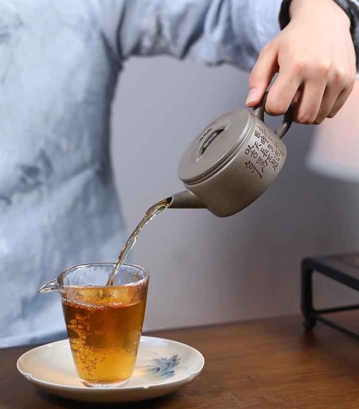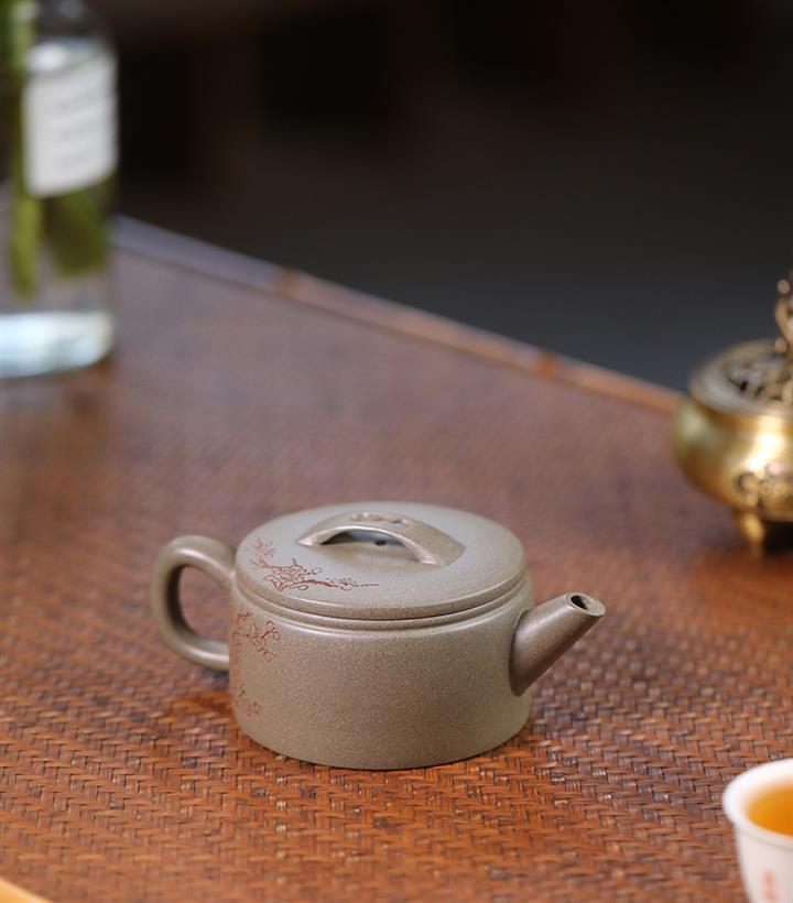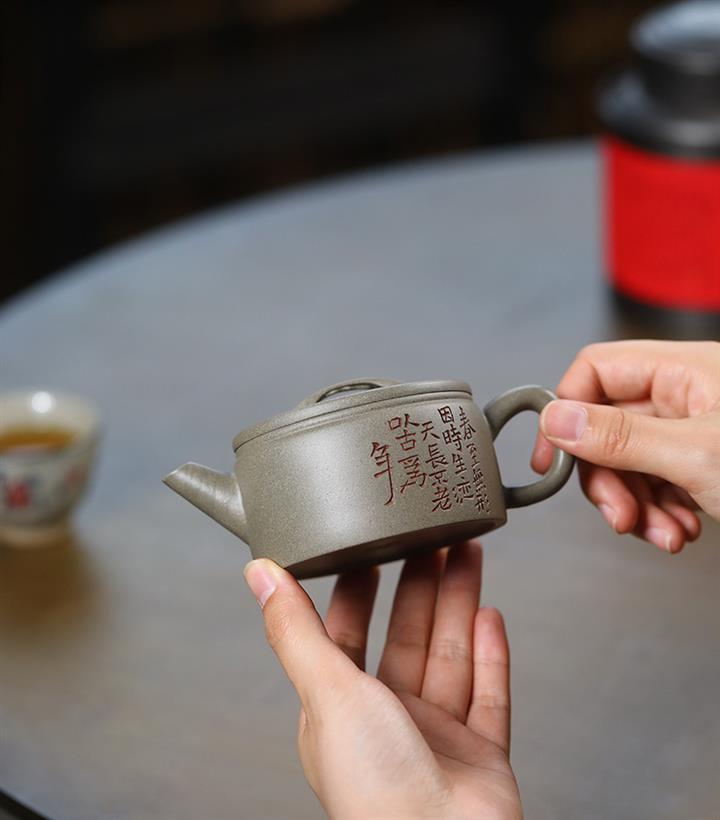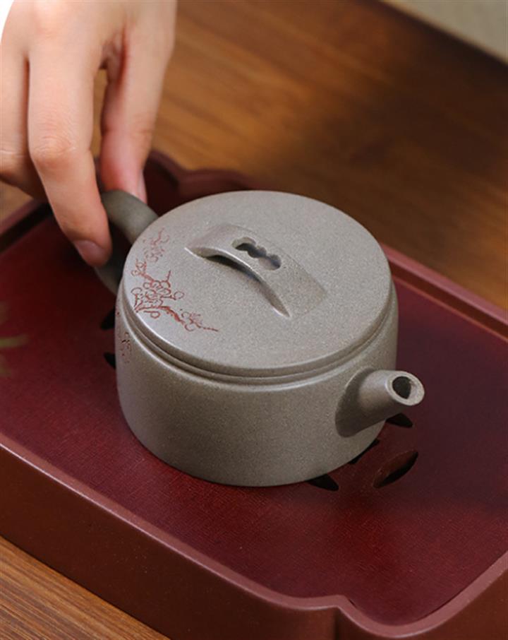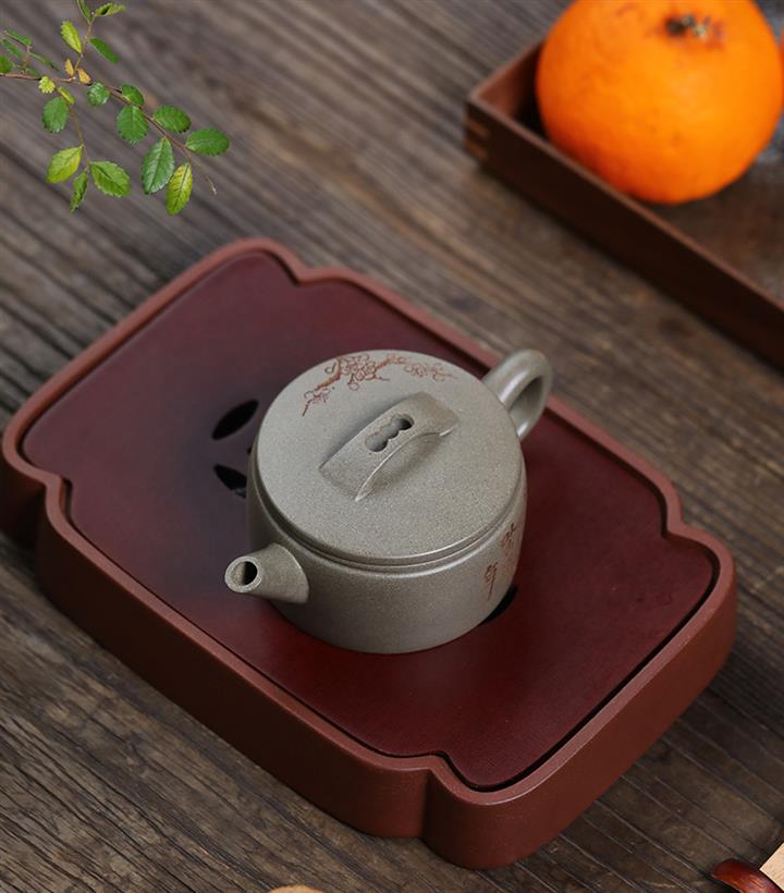 【泥料特點】砂土氣重,似淳實農民,日久使用,漸露鋒芒,養成變化,溫潤莊重。紫砂是壹種雙重氣孔結構的多孔性材質,氣孔微細,密度高。用紫砂壺沏茶,不失原味,且香不渙散,得茶之真香真味。紫砂使用越久,壺身色澤越發光亮照人,氣韻溫雅。紫砂壺長久使用器身會因撫摸擦拭,變得越發溫潤光澤。