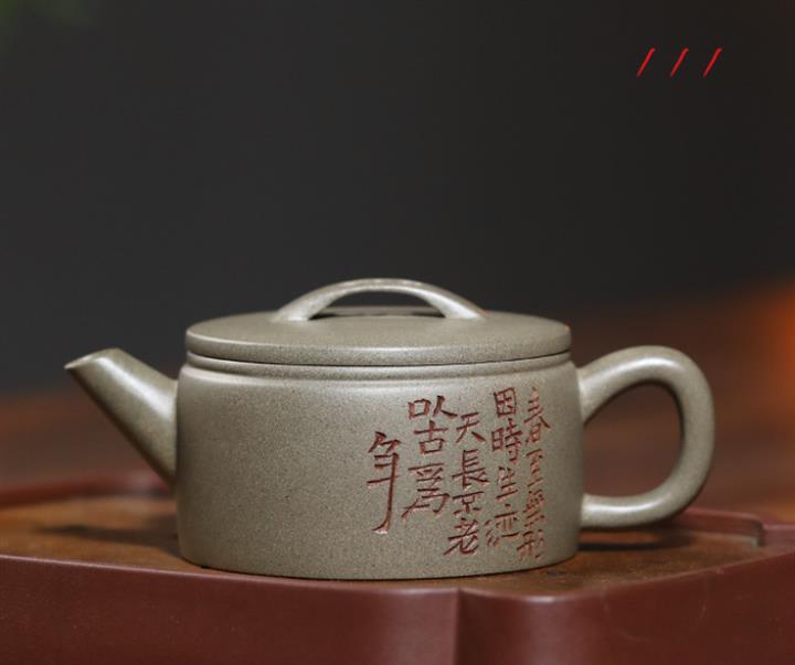 【作品介紹】此款壺形線條流暢,壺把,壺嘴,壺身壹氣呵成栩栩如生,是收藏把玩的好壺,泥料色澤古樸典雅,日久使用,漸露鋒芒,養成變化快,溫潤莊重,用其泡茶,使用的年代久,壺身就溫潤,泡出來的茶湯也就醇郁芳馨。