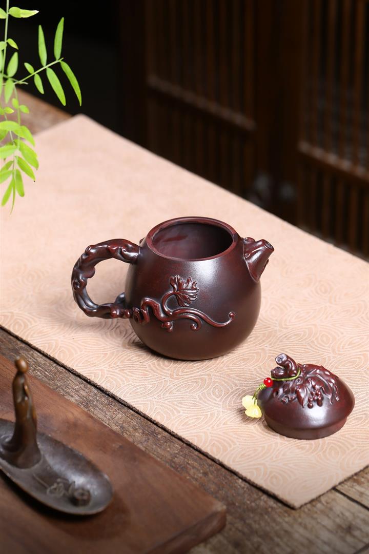 【作品介紹】此款壺形線條流暢,壺把,壺嘴,壺身壹氣呵成栩栩如生,是收藏把玩的好壺,泥料色澤古樸典雅,日久使用,漸露鋒芒,養成變化快,溫潤莊重,用其泡茶,使用的年代久,壺身就溫潤,泡出來的茶湯也就醇郁芳馨。
