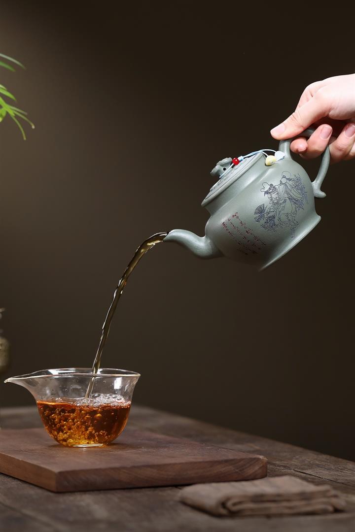 【作品介紹】此款壺形線條流暢,壺把,壺嘴,壺身壹氣呵成栩栩如生,是收藏把玩的好壺,泥料色澤古樸典雅,日久使用,漸露鋒芒,養成變化快,溫潤莊重,用其泡茶,使用的年代久,壺身就溫潤,泡出來的茶湯也就醇郁芳馨。