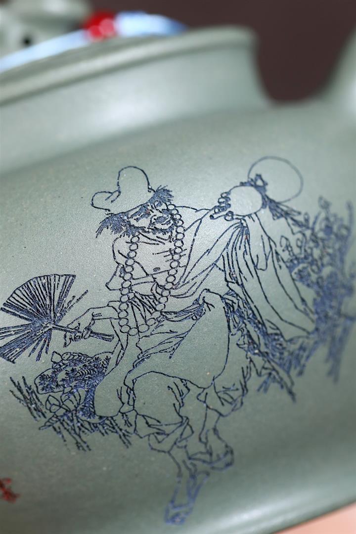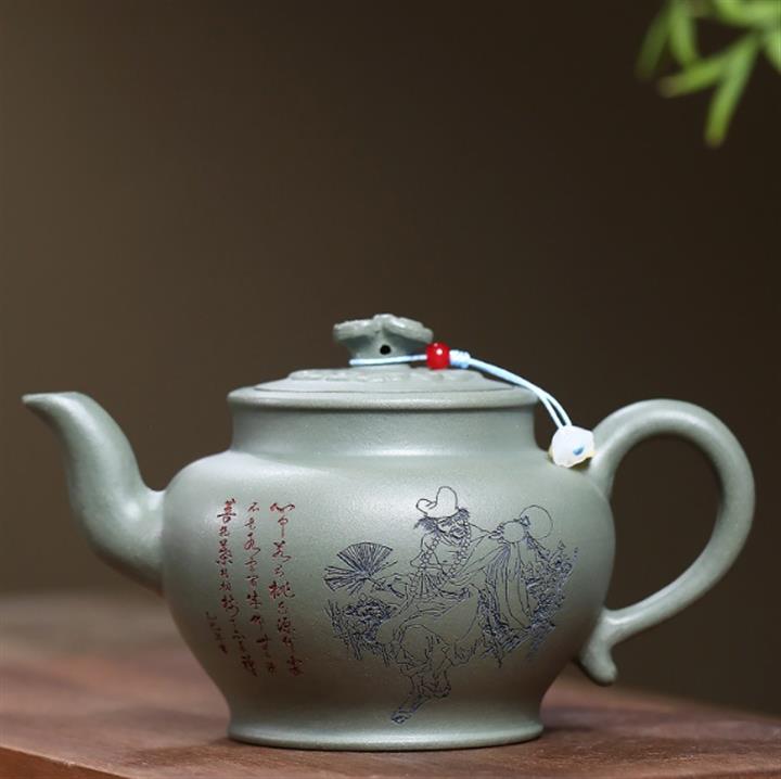 120cc原礦朱泥泥繪青竹西施泡茶壺POT9902