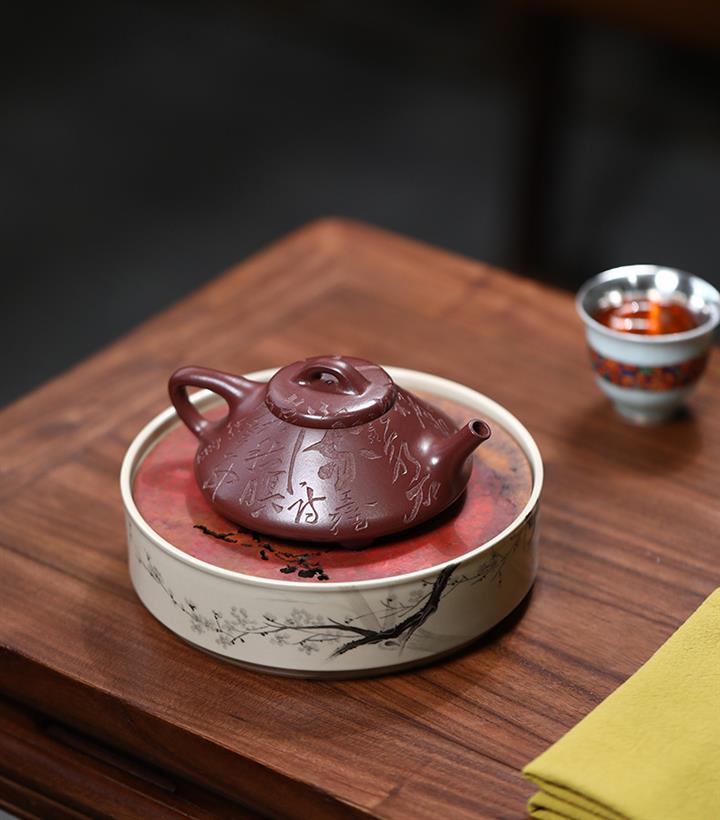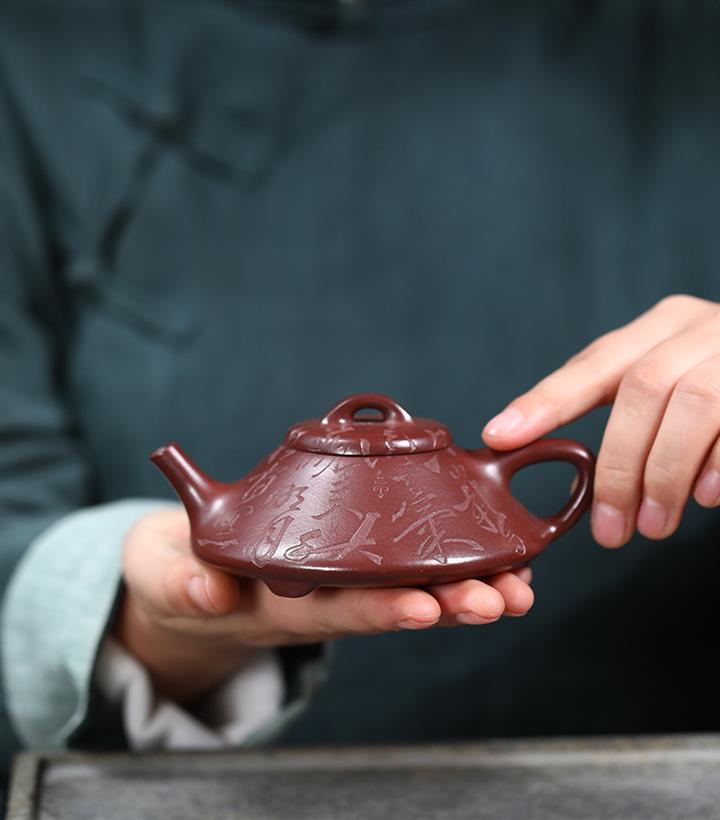 【泥料特點】砂土氣重,似淳實農民,日久使用,漸露鋒芒,養成變化,溫潤莊重。紫砂是壹種雙重氣孔結構的多孔性材質,氣孔微細,密度高。用紫砂壺沏茶,不失原味,且香不渙散,得茶之真香真味。紫砂使用越久,壺身色澤越發光亮照人,氣韻溫雅。紫砂壺長久使用器身會因撫摸擦拭,變得越發溫潤光澤。