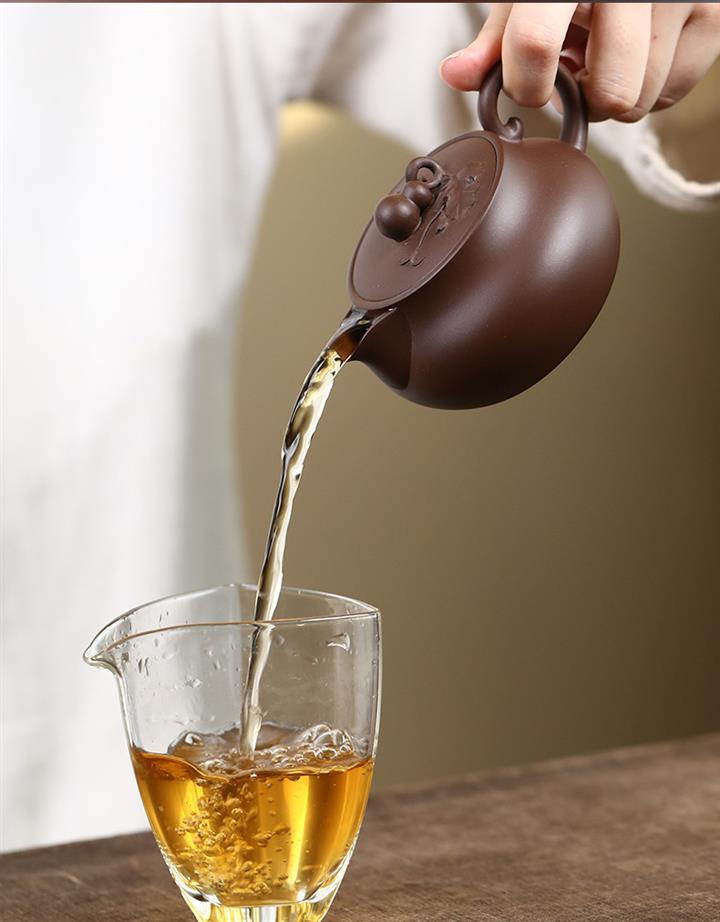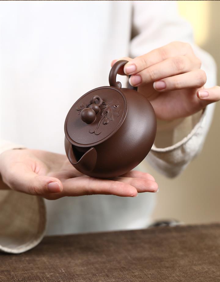 【泥料特點】砂土氣重,似淳實農民,日久使用,漸露鋒芒,養成變化,溫潤莊重。紫砂是壹種雙重氣孔結構的多孔性材質,氣孔微細,密度高。用紫砂壺沏茶,不失原味,且香不渙散,得茶之真香真味。紫砂使用越久,壺身色澤越發光亮照人,氣韻溫雅。紫砂壺長久使用器身會因撫摸擦拭,變得越發溫潤光澤。