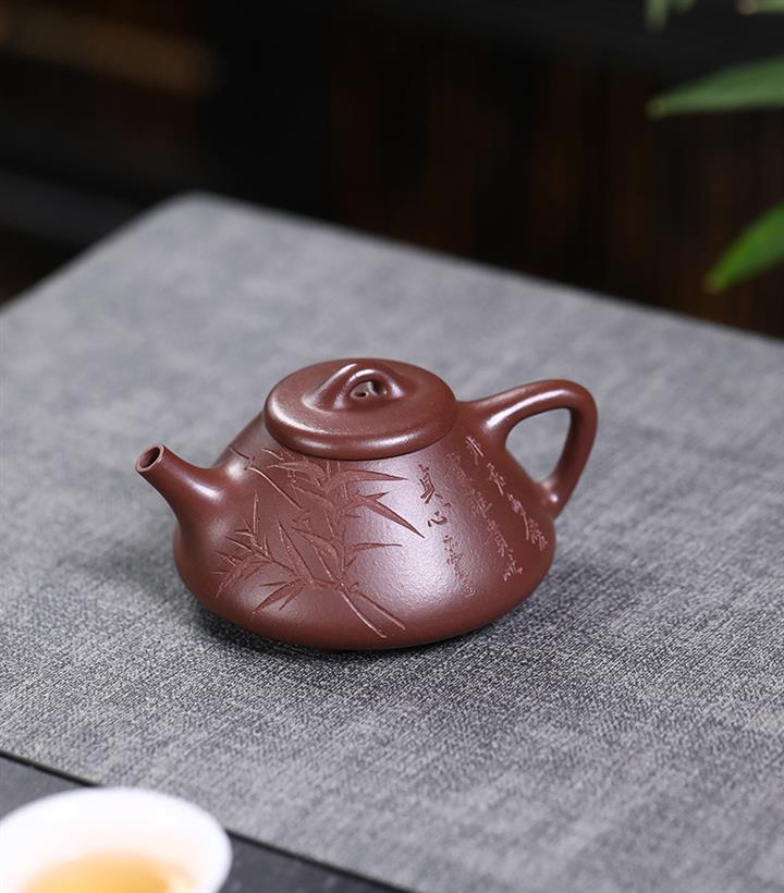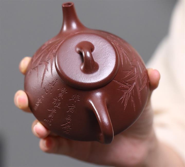 120cc原礦朱泥泥繪青竹西施泡茶壺POT9902