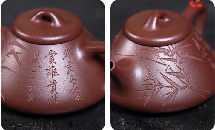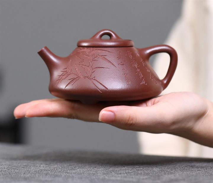 【泥料特點】砂土氣重,似淳實農民,日久使用,漸露鋒芒,養成變化,溫潤莊重。紫砂是壹種雙重氣孔結構的多孔性材質,氣孔微細,密度高。用紫砂壺沏茶,不失原味,且香不渙散,得茶之真香真味。紫砂使用越久,壺身色澤越發光亮照人,氣韻溫雅。紫砂壺長久使用器身會因撫摸擦拭,變得越發溫潤光澤。