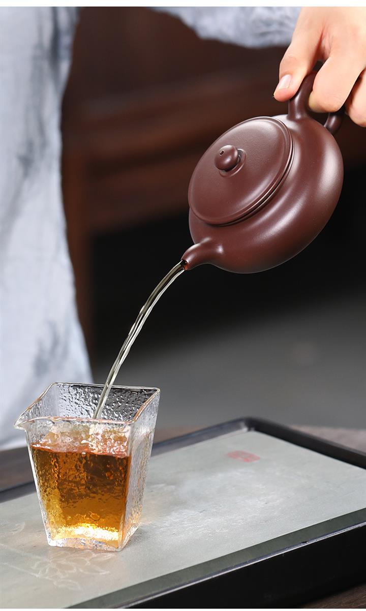 【泥料特點】砂土氣重,似淳實農民,日久使用,漸露鋒芒,養成變化,溫潤莊重。紫砂是壹種雙重氣孔結構的多孔性材質,氣孔微細,密度高。用紫砂壺沏茶,不失原味,且香不渙散,得茶之真香真味。紫砂使用越久,壺身色澤越發光亮照人,氣韻溫雅。紫砂壺長久使用器身會因撫摸擦拭,變得越發溫潤光澤。