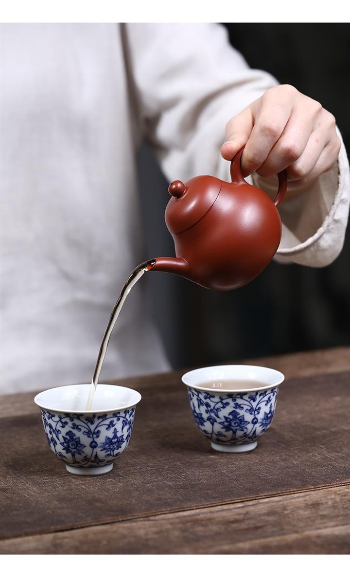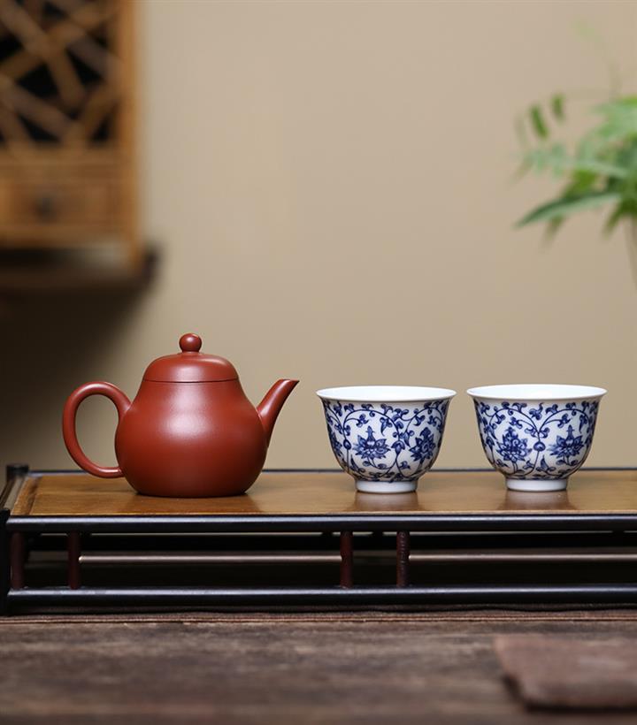 【容量】壺150cc紅泥主杯50cc青花瓷杯70cc