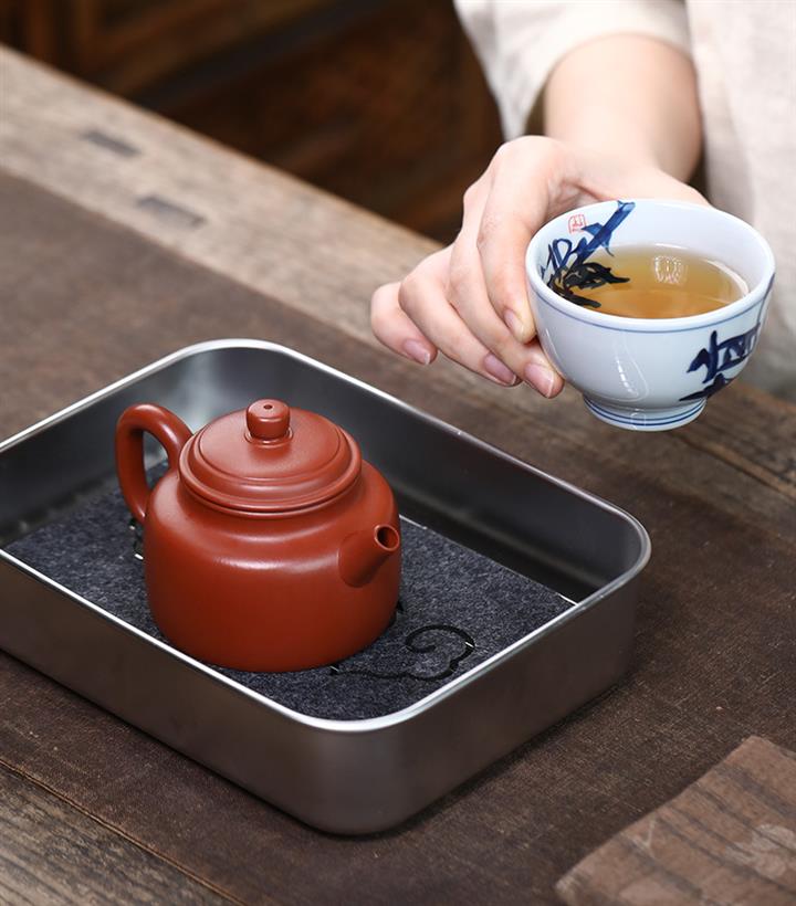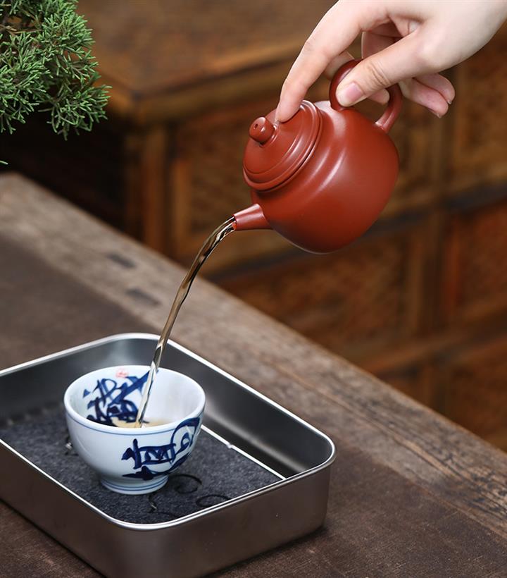 【泥料特點】砂土氣重,似淳實農民,日久使用,漸露鋒芒,養成變化,溫潤莊重。紫砂是壹種雙重氣孔結構的多孔性材質,氣孔微細,密度高。用紫砂壺沏茶,不失原味,且香不渙散,得茶之真香真味。紫砂使用越久,壺身色澤越發光亮照人,氣韻溫雅。紫砂壺長久使用器身會因撫摸擦拭,變得越發溫潤光澤。