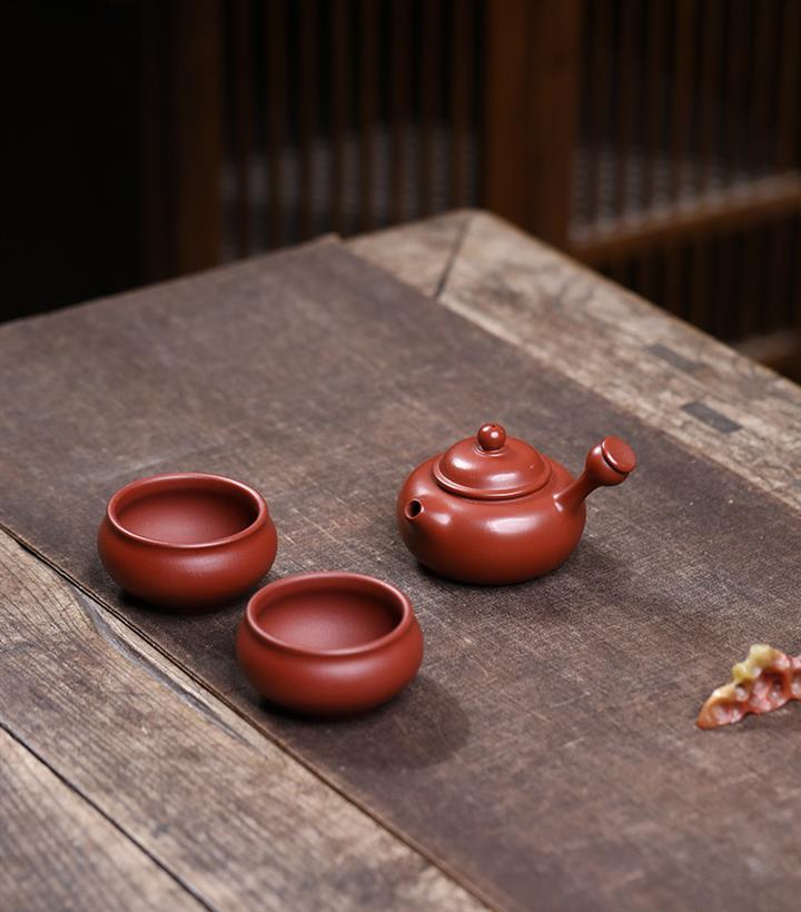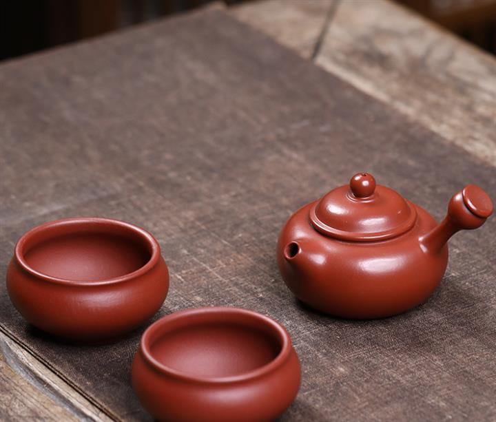 70cc原礦朱泥側把唐羽壹壺兩杯套裝泡茶壺POT9923