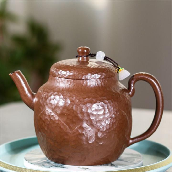 245cc原礦文革泥手工錘紋蓮花宮燈泡茶壺POT9935