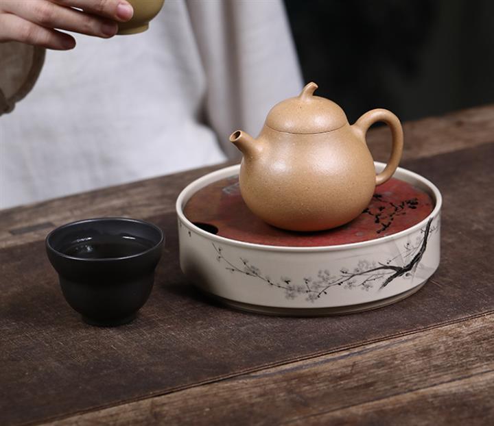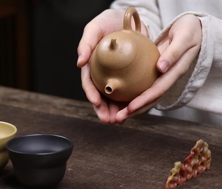 【泥料特點】砂土氣重,似淳實農民,日久使用,漸露鋒芒,養成變化,溫潤莊重。紫砂是壹種雙重氣孔結構的多孔性材質,氣孔微細,密度高。用紫砂壺沏茶,不失原味,且香不渙散,得茶之真香真味。紫砂使用越久,壺身色澤越發光亮照人,氣韻溫雅。紫砂壺長久使用器身會因撫摸擦拭,變得越發溫潤光澤。
