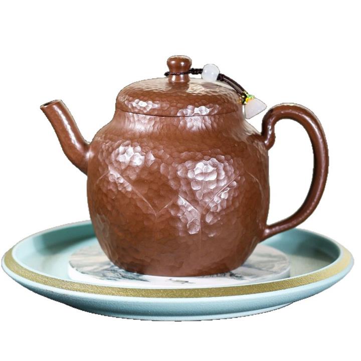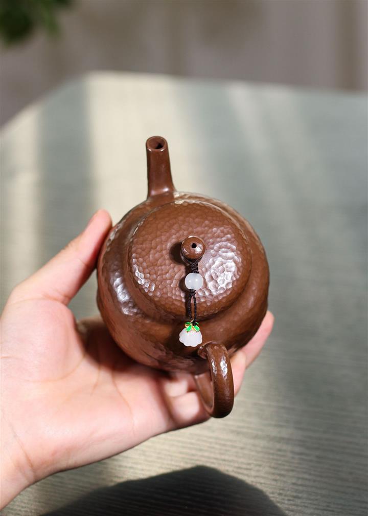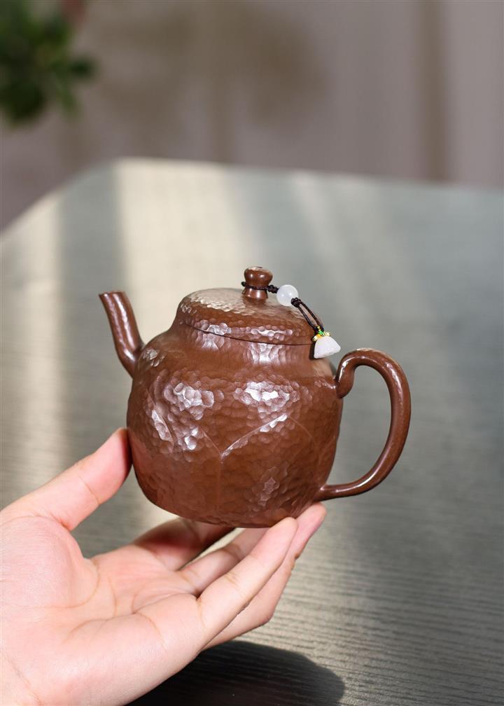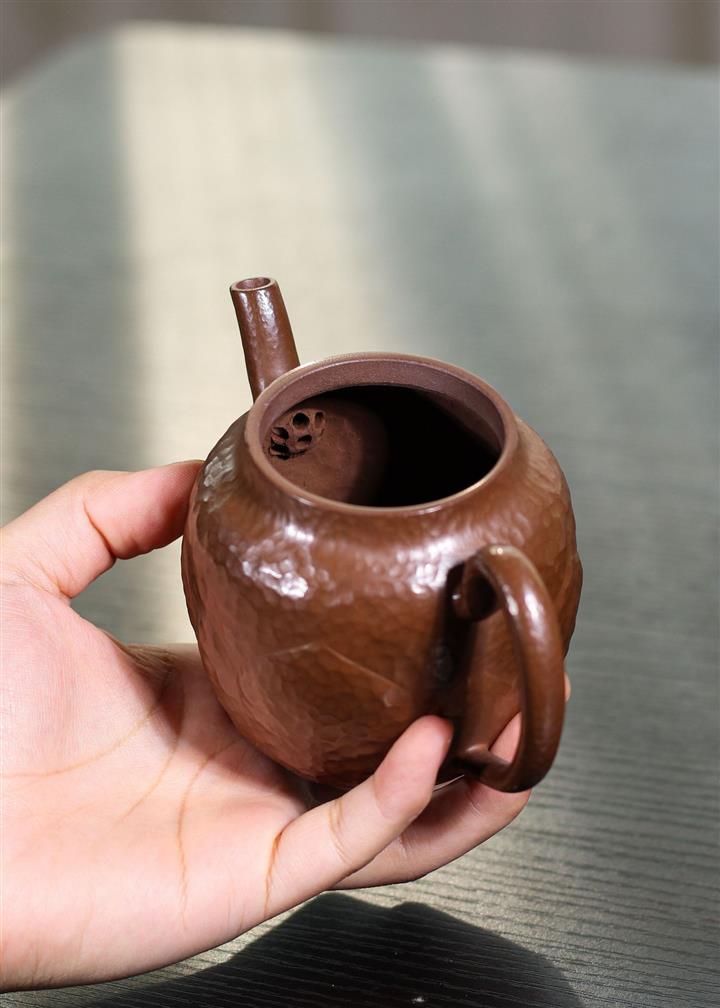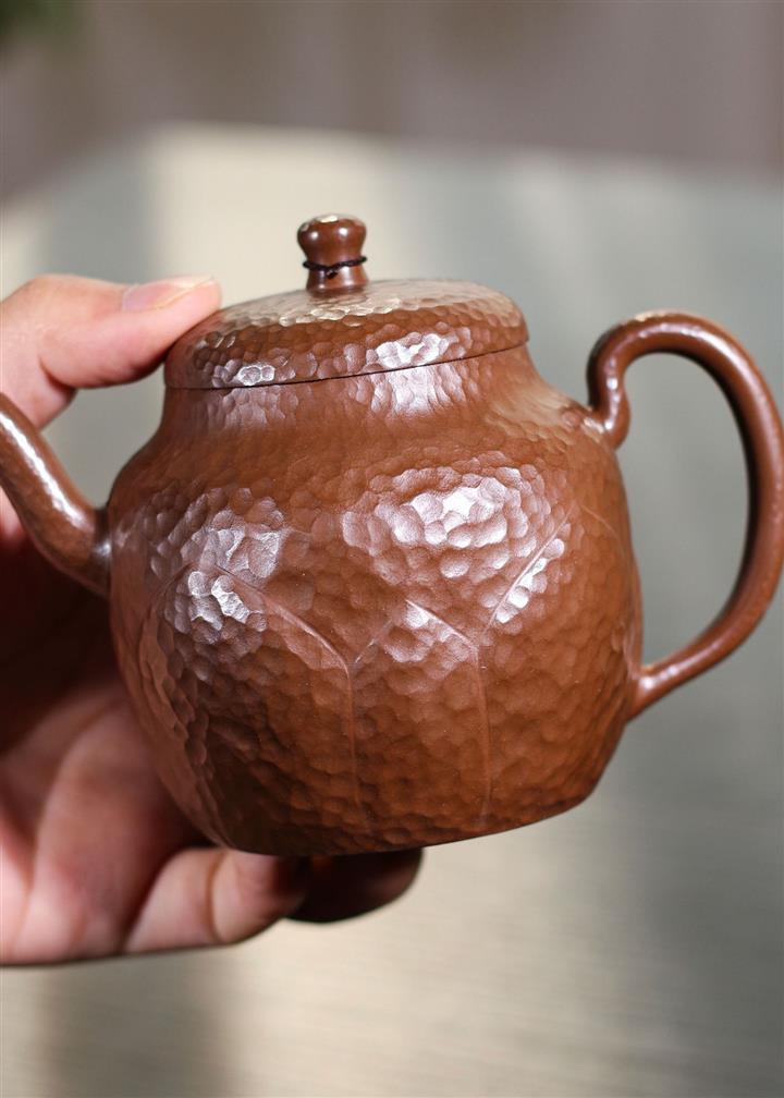 245cc原礦文革泥手工錘紋蓮花宮燈泡茶壺POT9935