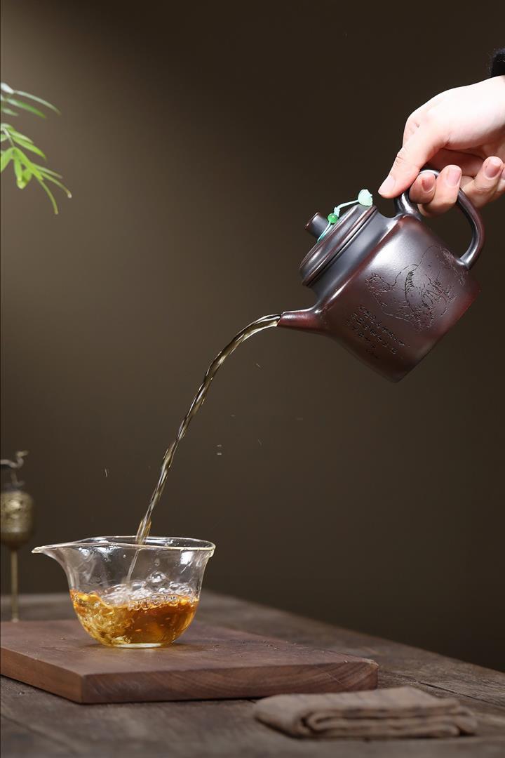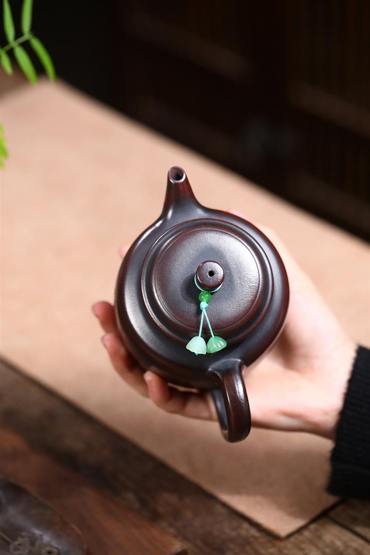 【泥料特點】砂土氣重,似淳實農民,日久使用,漸露鋒芒,養成變化,溫潤莊重。紫砂是壹種雙重氣孔結構的多孔性材質,氣孔微細,密度高。用紫砂壺沏茶,不失原味,且香不渙散,得茶之真香真味。紫砂使用越久,壺身色澤越發光亮照人,氣韻溫雅。紫砂壺長久使用器身會因撫摸擦拭,變得越發溫潤光澤。