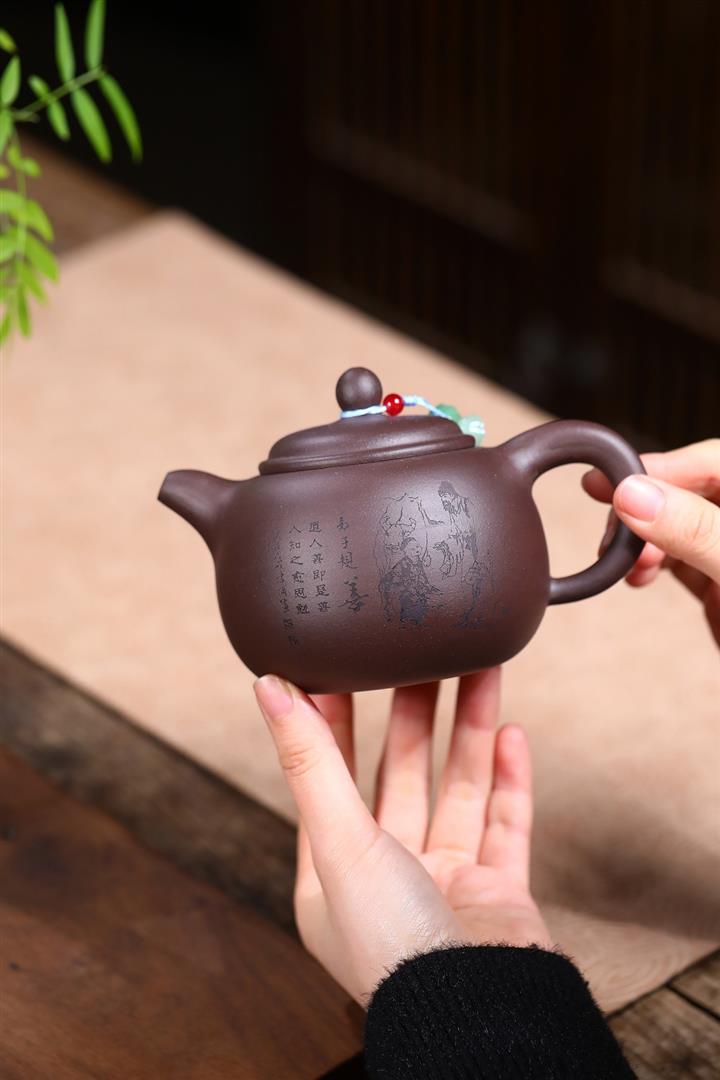 【作品介紹】此款壺形線條流暢,壺把,壺嘴,壺身壹氣呵成栩栩如生,是收藏把玩的好壺,泥料色澤古樸典雅,日久使用,漸露鋒芒,養成變化快,溫潤莊重,用其泡茶,使用的年代久,壺身就溫潤,泡出來的茶湯也就醇郁芳馨。