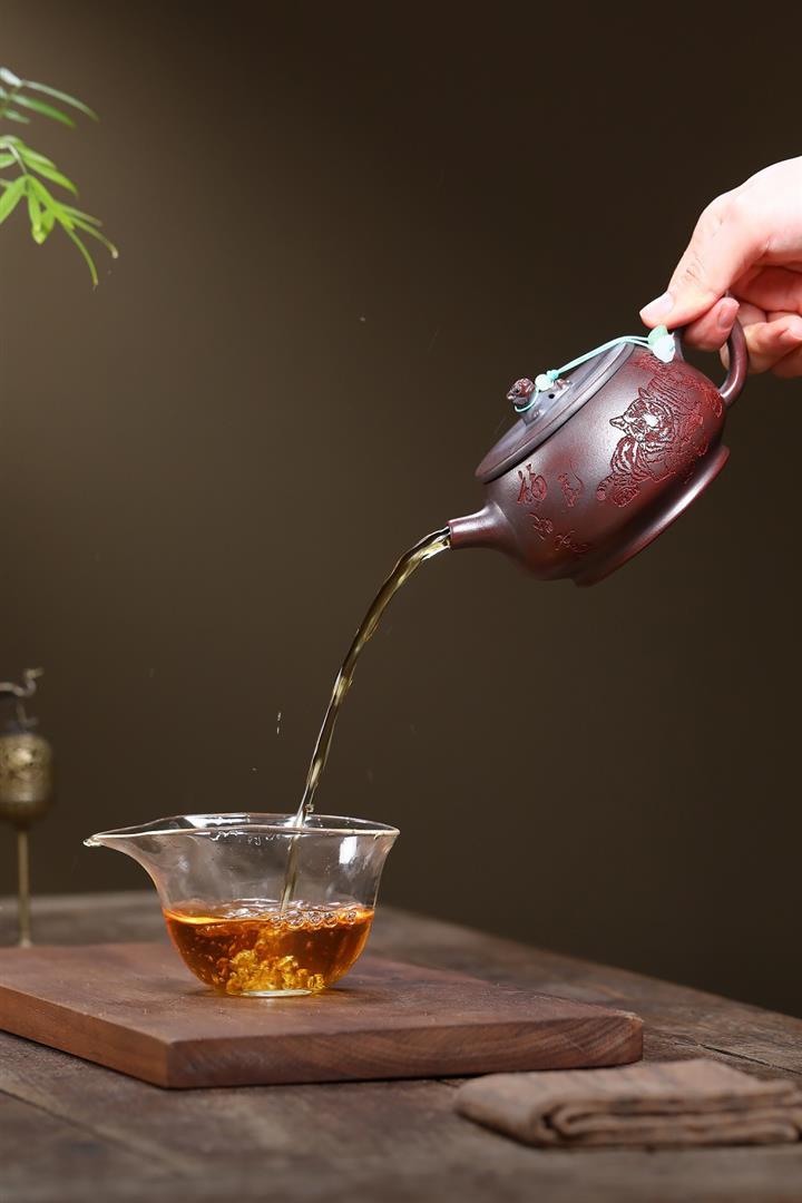 【作品介紹】此款壺形線條流暢,壺把,壺嘴,壺身壹氣呵成栩栩如生,是收藏把玩的好壺,泥料色澤古樸典雅,日久使用,漸露鋒芒,養成變化快,溫潤莊重,用其泡茶,使用的年代久,壺身就溫潤,泡出來的茶湯也就醇郁芳馨。