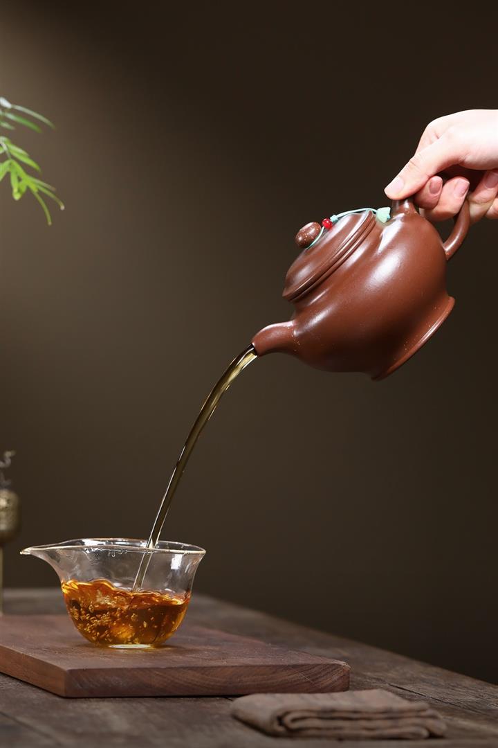 【泥料特點】砂土氣重,似淳實農民,日久使用,漸露鋒芒,養成變化,溫潤莊重。紫砂是壹種雙重氣孔結構的多孔性材質,氣孔微細,密度高。用紫砂壺沏茶,不失原味,且香不渙散,得茶之真香真味。紫砂使用越久,壺身色澤越發光亮照人,氣韻溫雅。紫砂壺長久使用器身會因撫摸擦拭,變得越發溫潤光澤。