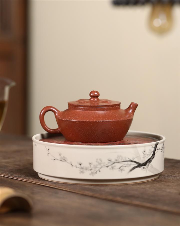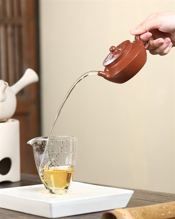 【泥料特點】砂土氣重,似淳實農民,日久使用,漸露鋒芒,養成變化,溫潤莊重。紫砂是壹種雙重氣孔結構的多孔性材質,氣孔微細,密度高。用紫砂壺沏茶,不失原味,且香不渙散,得茶之真香真味。紫砂使用越久,壺身色澤越發光亮照人,氣韻溫雅。紫砂壺長久使用器身會因撫摸擦拭,變得越發溫潤光澤。