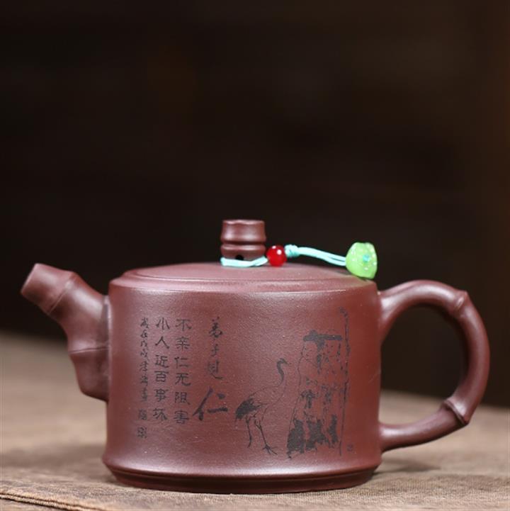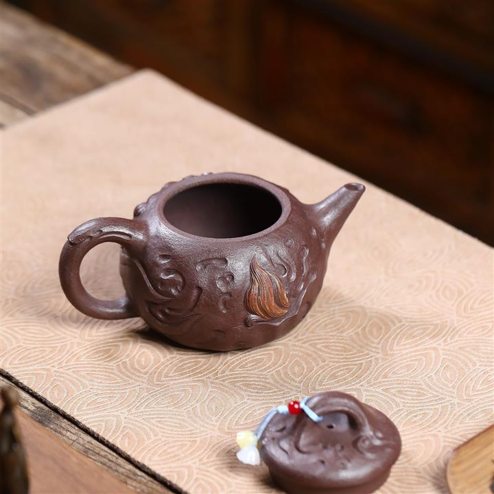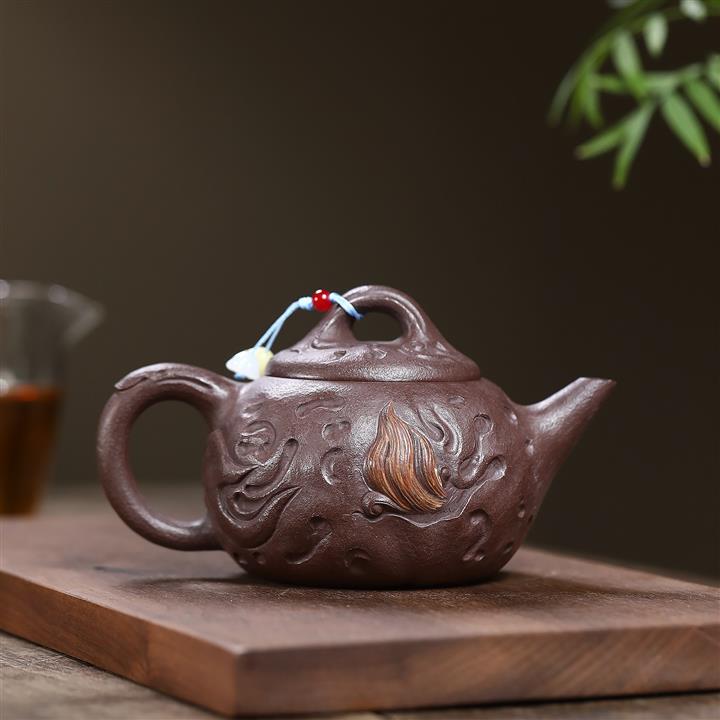 140cc原礦紅皮龍泥繪太湖石影泡茶壺POT9970