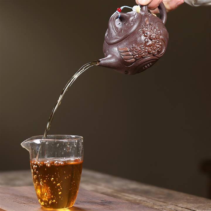 【泥料特點】砂土氣重,似淳實農民,日久使用,漸露鋒芒,養成變化,溫潤莊重。紫砂是壹種雙重氣孔結構的多孔性材質,氣孔微細,密度高。用紫砂壺沏茶,不失原味,且香不渙散,得茶之真香真味。紫砂使用越久,壺身色澤越發光亮照人,氣韻溫雅。紫砂壺長久使用器身會因撫摸擦拭,變得越發溫潤光澤。