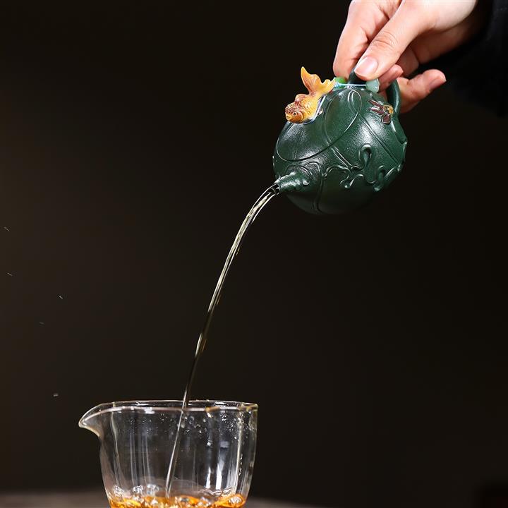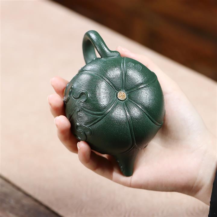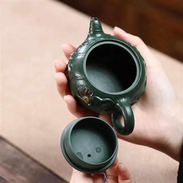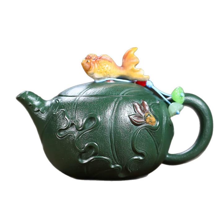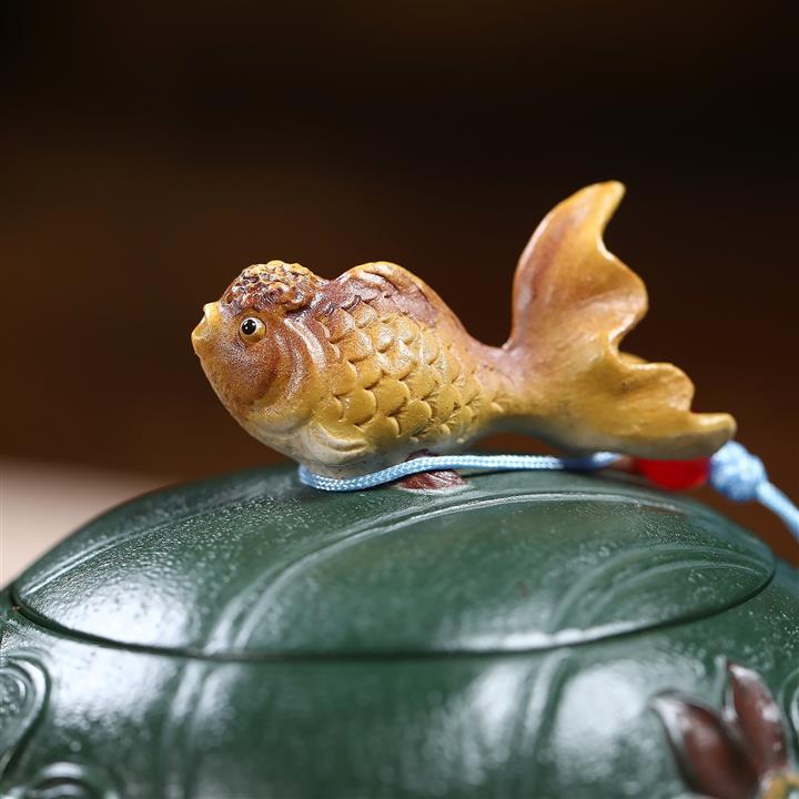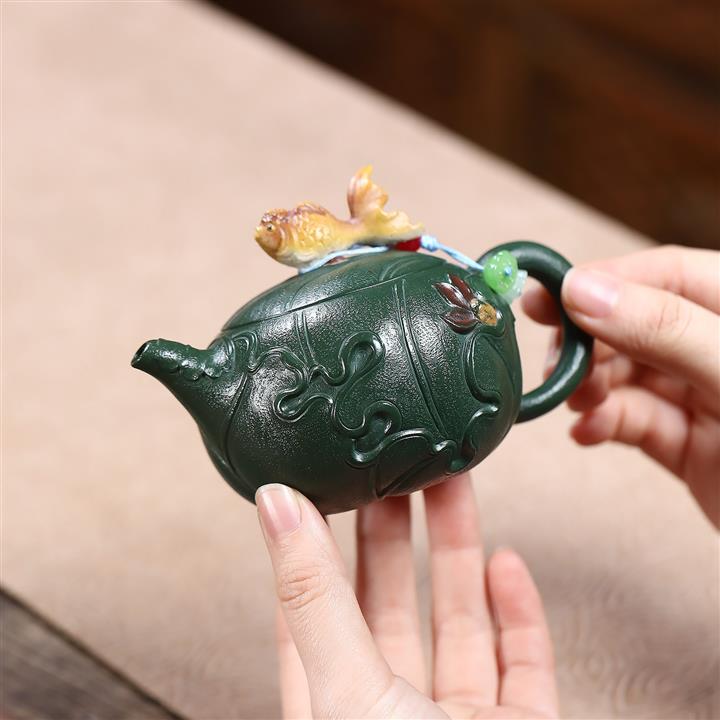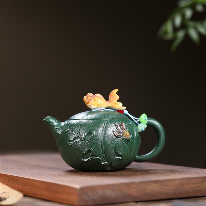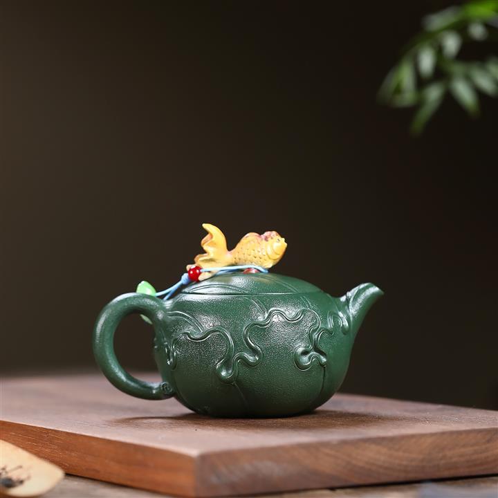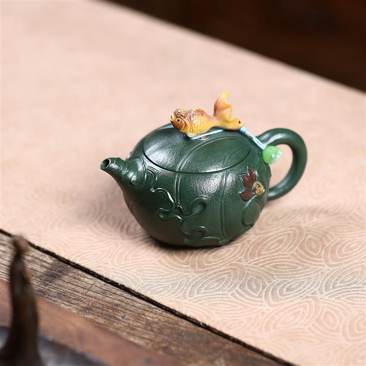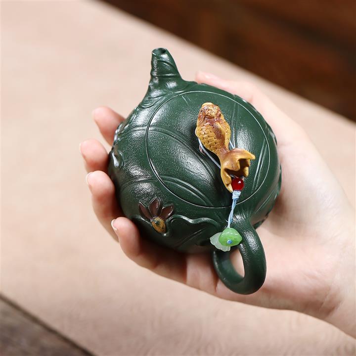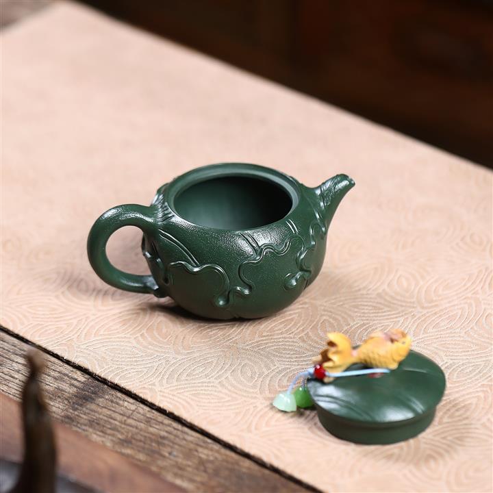 160cc原礦綠泥魚躍蓮心泡茶壺POT9965
