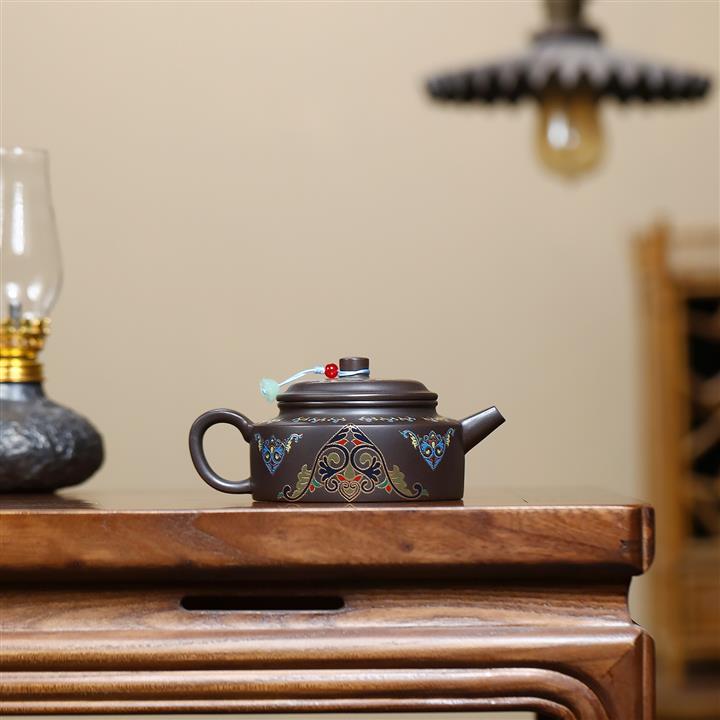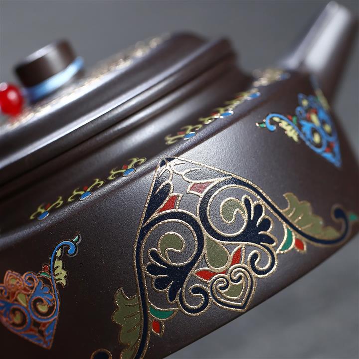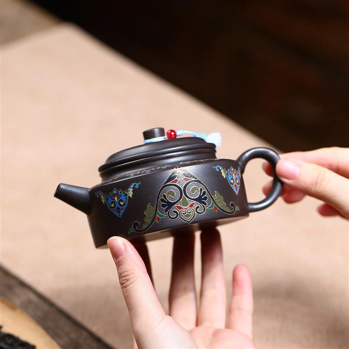 140cc原礦紅皮龍泥繪太湖石影泡茶壺POT9970