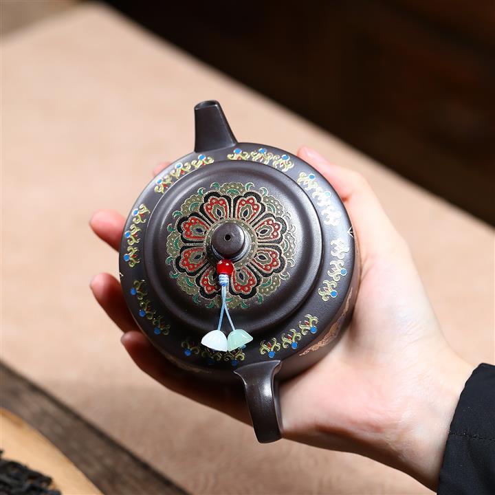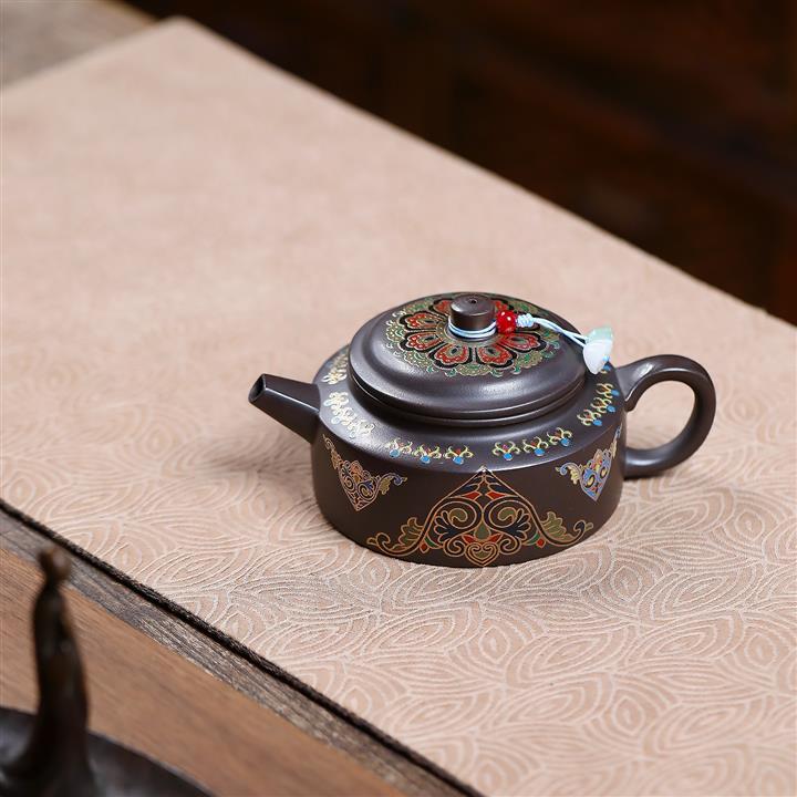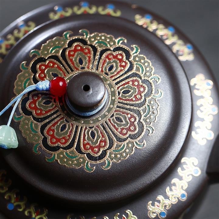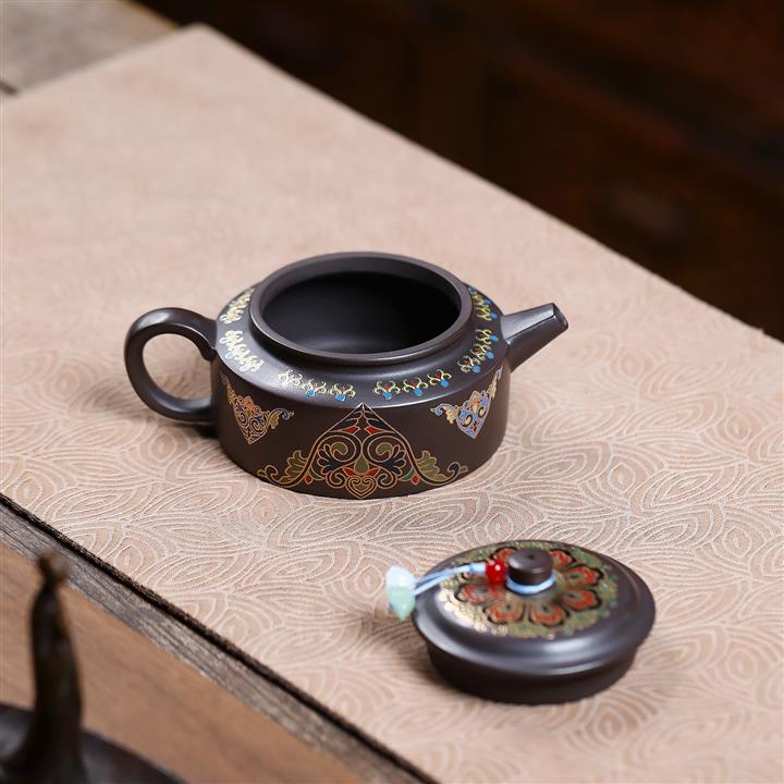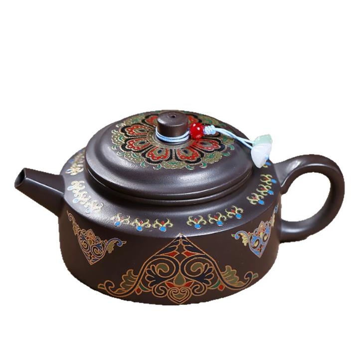200cc原礦石黃泥琺瑯金輪泡茶壺POT9966