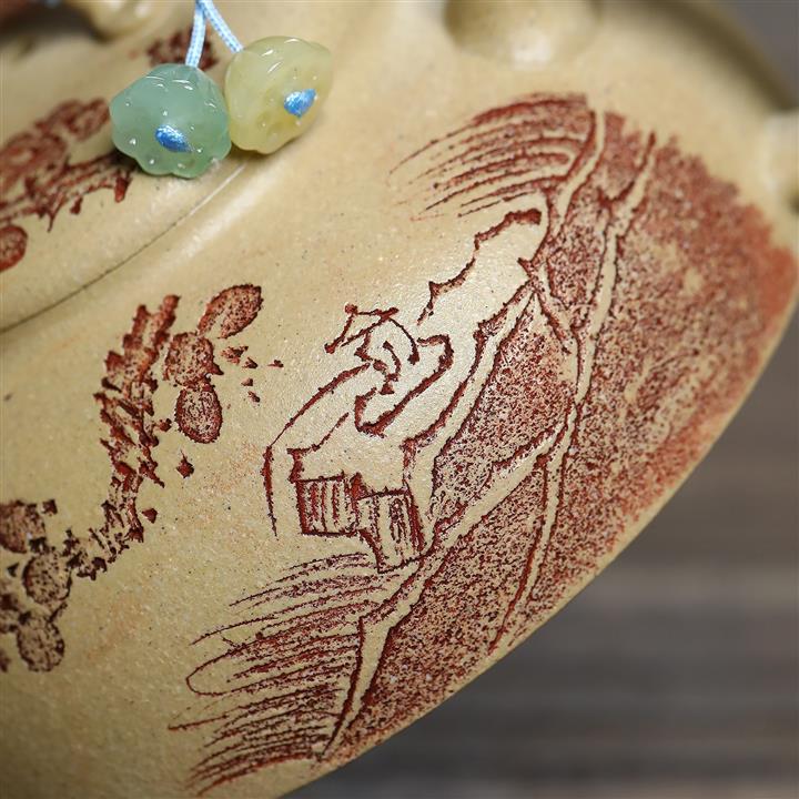 140cc原礦紅皮龍泥繪太湖石影泡茶壺POT9970