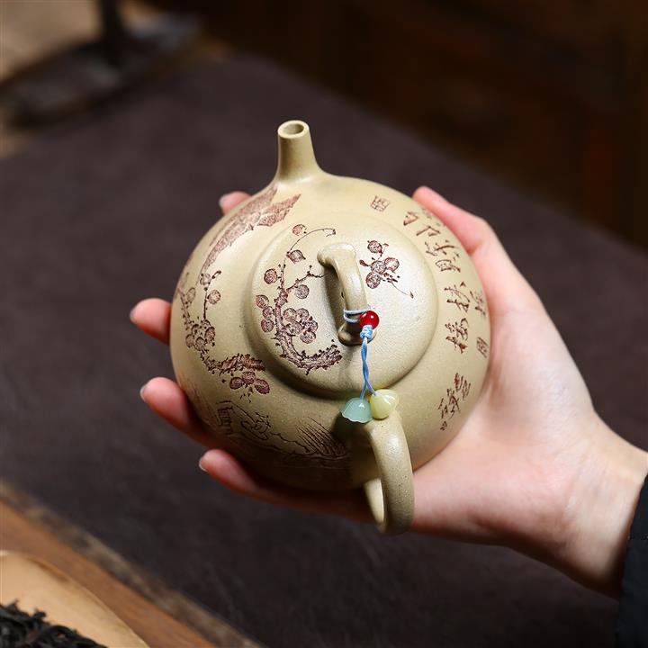 【作品介紹】此款壺形線條流暢,壺把,壺嘴,壺身壹氣呵成栩栩如生,是收藏把玩的好壺,泥料色澤古樸典雅,日久使用,漸露鋒芒,養成變化快,溫潤莊重,用其泡茶,使用的年代久,壺身就溫潤,泡出來的茶湯也就醇郁芳馨。