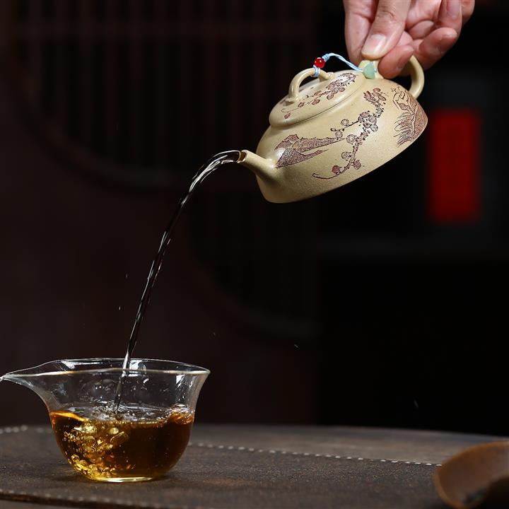 【泥料特點】砂土氣重,似淳實農民,日久使用,漸露鋒芒,養成變化,溫潤莊重。紫砂是壹種雙重氣孔結構的多孔性材質,氣孔微細,密度高。用紫砂壺沏茶,不失原味,且香不渙散,得茶之真香真味。紫砂使用越久,壺身色澤越發光亮照人,氣韻溫雅。紫砂壺長久使用器身會因撫摸擦拭,變得越發溫潤光澤。