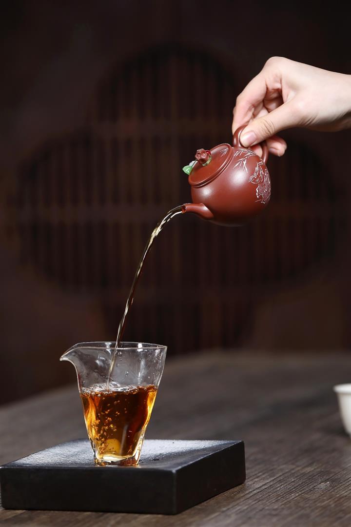【泥料特點】砂土氣重,似淳實農民,日久使用,漸露鋒芒,養成變化,溫潤莊重。紫砂是壹種雙重氣孔結構的多孔性材質,氣孔微細,密度高。用紫砂壺沏茶,不失原味,且香不渙散,得茶之真香真味。紫砂使用越久,壺身色澤越發光亮照人,氣韻溫雅。紫砂壺長久使用器身會因撫摸擦拭,變得越發溫潤光澤。