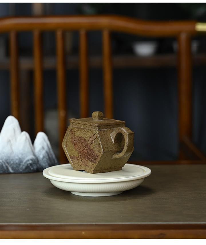 【泥料特點】砂土氣重,似淳實農民,日久使用,漸露鋒芒,養成變化,溫潤莊重。紫砂是壹種雙重氣孔結構的多孔性材質,氣孔微細,密度高。用紫砂壺沏茶,不失原味,且香不渙散,得茶之真香真味。紫砂使用越久,壺身色澤越發光亮照人,氣韻溫雅。紫砂壺長久使用器身會因撫摸擦拭,變得越發溫潤光澤。