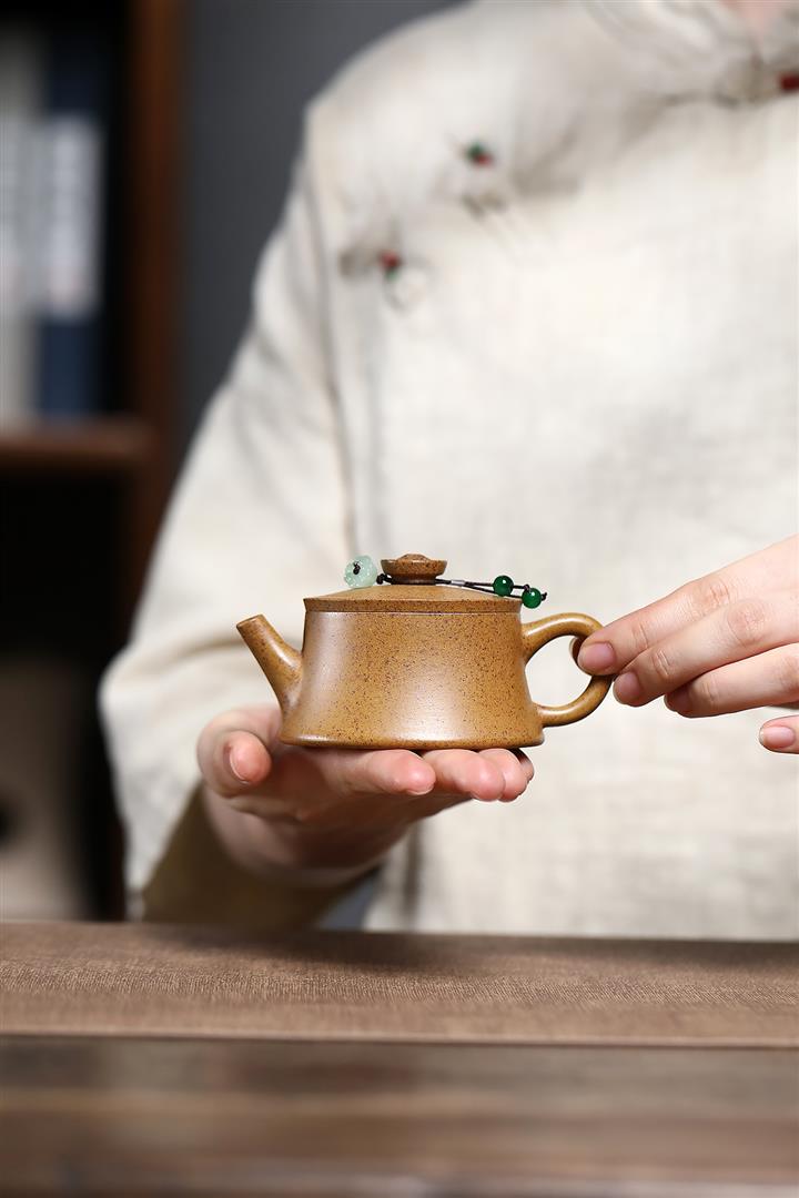【作品介紹】此款壺形線條流暢,壺把,壺嘴,壺身壹氣呵成栩栩如生,是收藏把玩的好壺,泥料色澤古樸典雅,日久使用,漸露鋒芒,養成變化快,溫潤莊重,用其泡茶,使用的年代久,壺身就溫潤,泡出來的茶湯也就醇郁芳馨。